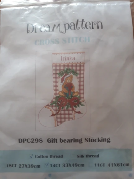 Набор для вышивки крестиком Polar чулок с медведем, хлопковая шелко...