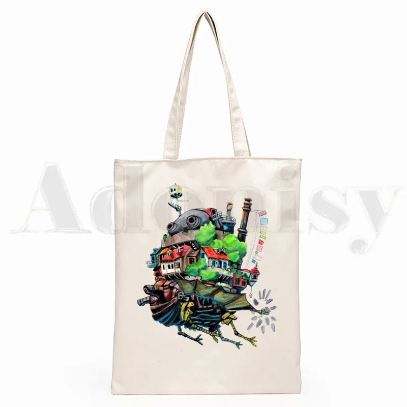 Howl's Moving Castle, модная повседневная сумка для покупок с мультяшным принтом для девочек, сумка для покупок с передвигающимся замком, Pacakge Studio Ghibli