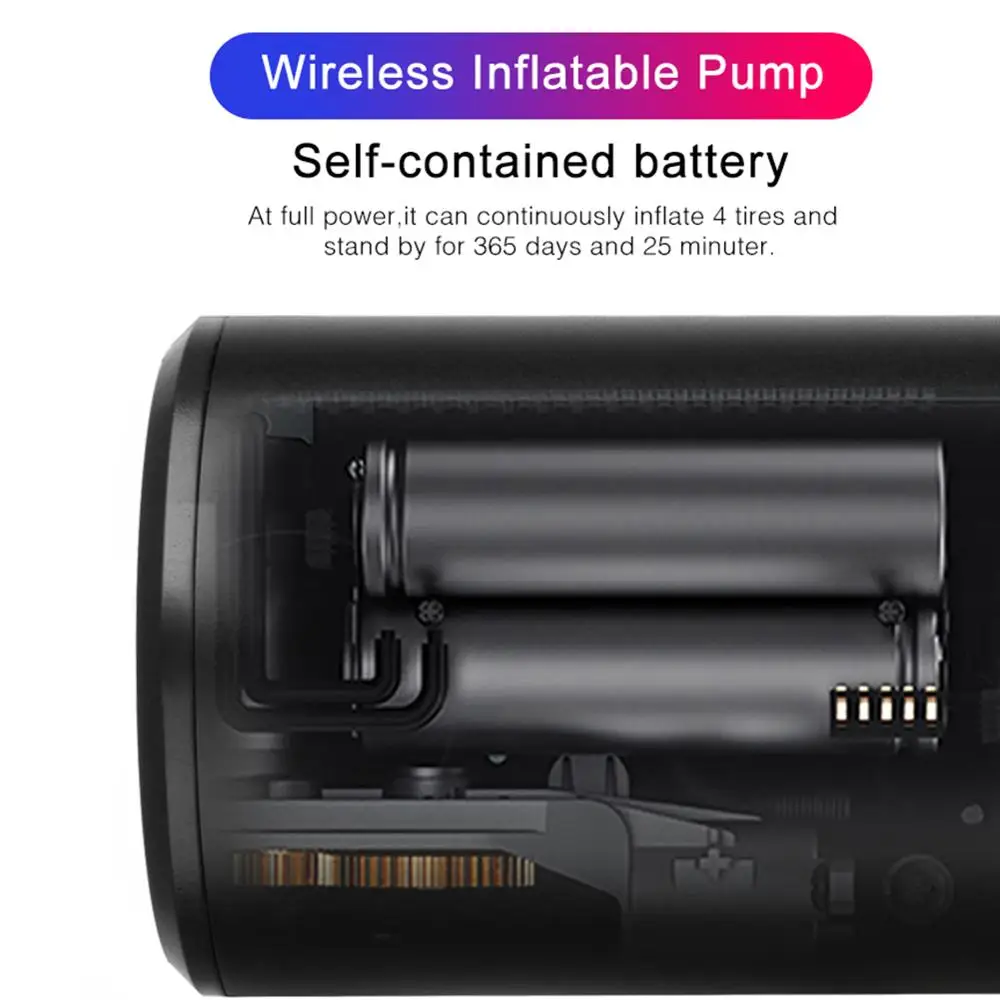 Параметры:Емкость аккумулятора: 2000 мАчИнфляция эффективность: 15 л/минИнфляционное давление: Макс. 150psi (10 бар/10 кг/1000 кПа)Единицы измерения давления: PSI, бар, кПа, кг/см2Внешний воздушный шланг длина: 13 см ± 0,5 см (5,1 ± 0,2 дюйма)Рабочая температура: 0 °C ~ 60 °CРазмеры: около 6*6*25 см (2,4*2,4*9,8 дюймов)Вес: около 440 г/0,97lbМаксимальное непрерывное время работы: 20 минМногократное использование предназначено для вашей жизни:Для автомобилей/SUV/RV шиныДля велосипедных/мотоциклетных шинДля спортивного оборудованияДля надувных игрушекПримечание: Не для фургонов, автобусов, домов, грузовиков.