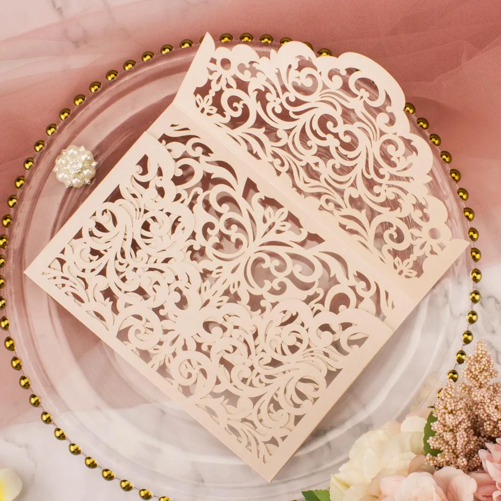 50 шт. свадебные пригласительные открытки Свадебные Румяна розовые белые цвета слоновой кости черная лазерная резка приглашение день рождения Персонализация Бесплатная доставка "Только лазерное покрытие"= Лазерный Карманный чехолТолько