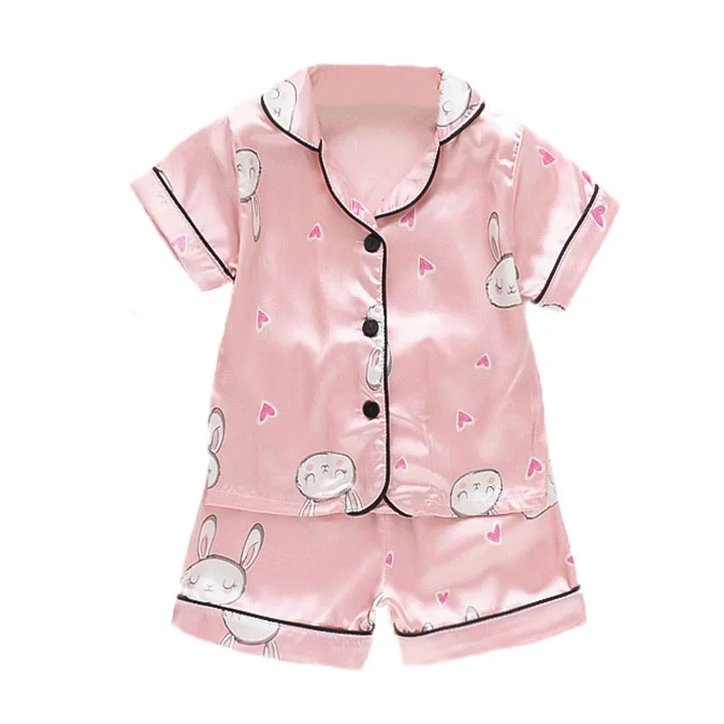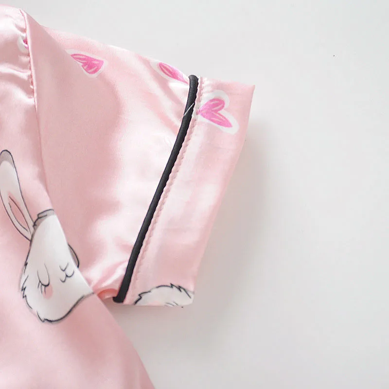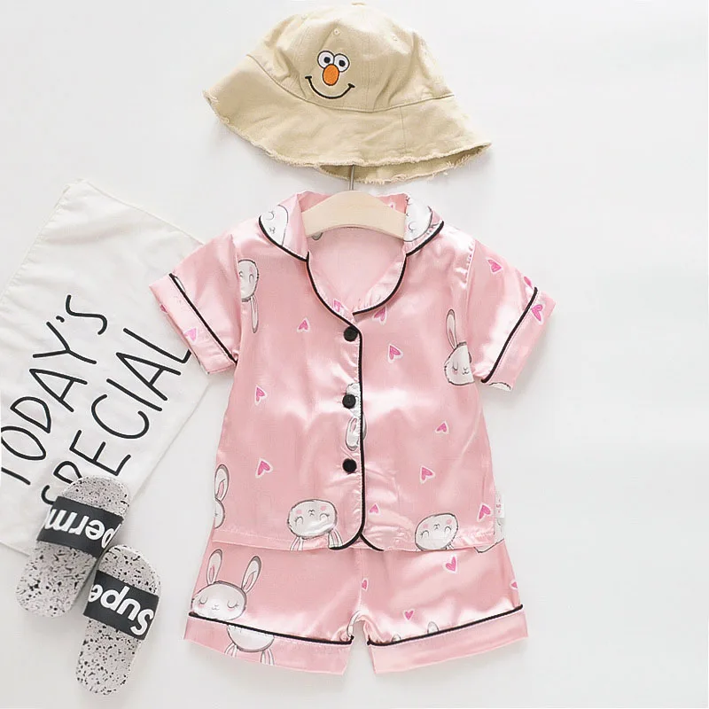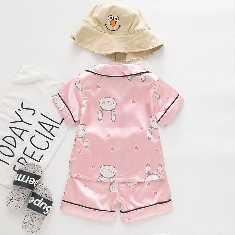 Летний пижамный комплект для мальчиков и девочек из ледяного шелка, милая пижама в виде кролика, детские топы и штаны, комплект одежды, детская ночная рубашка для мальчиков с мультяшным рисунком