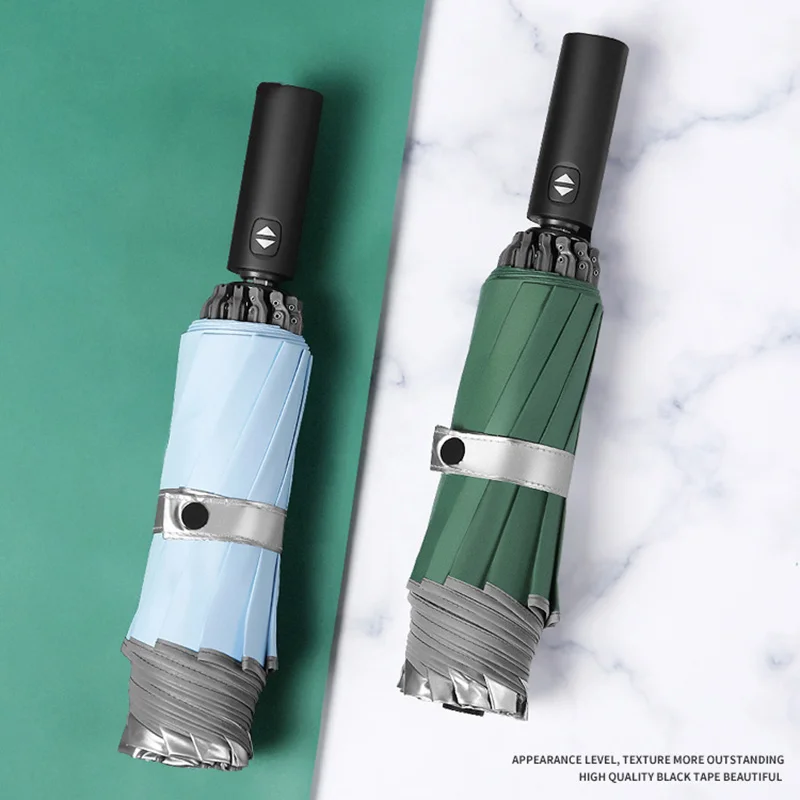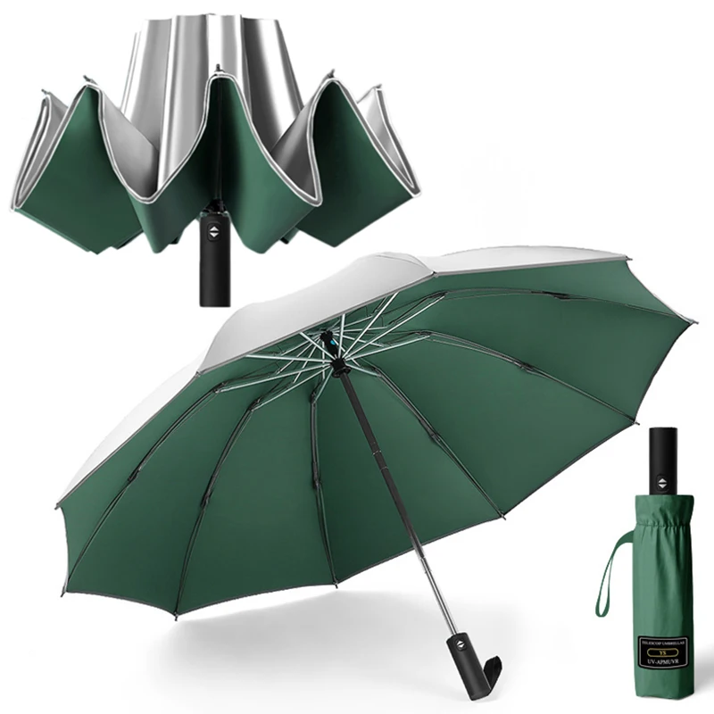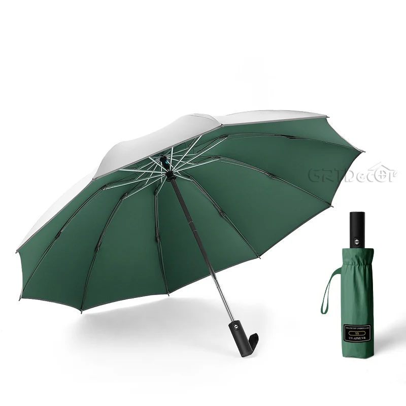 Автоматические зонты с серебряным покрытием для мужчин, 10 ребер, УФ-лампа, женские и мужские дорожные ветрозащитные зонтики от дождя и солнца