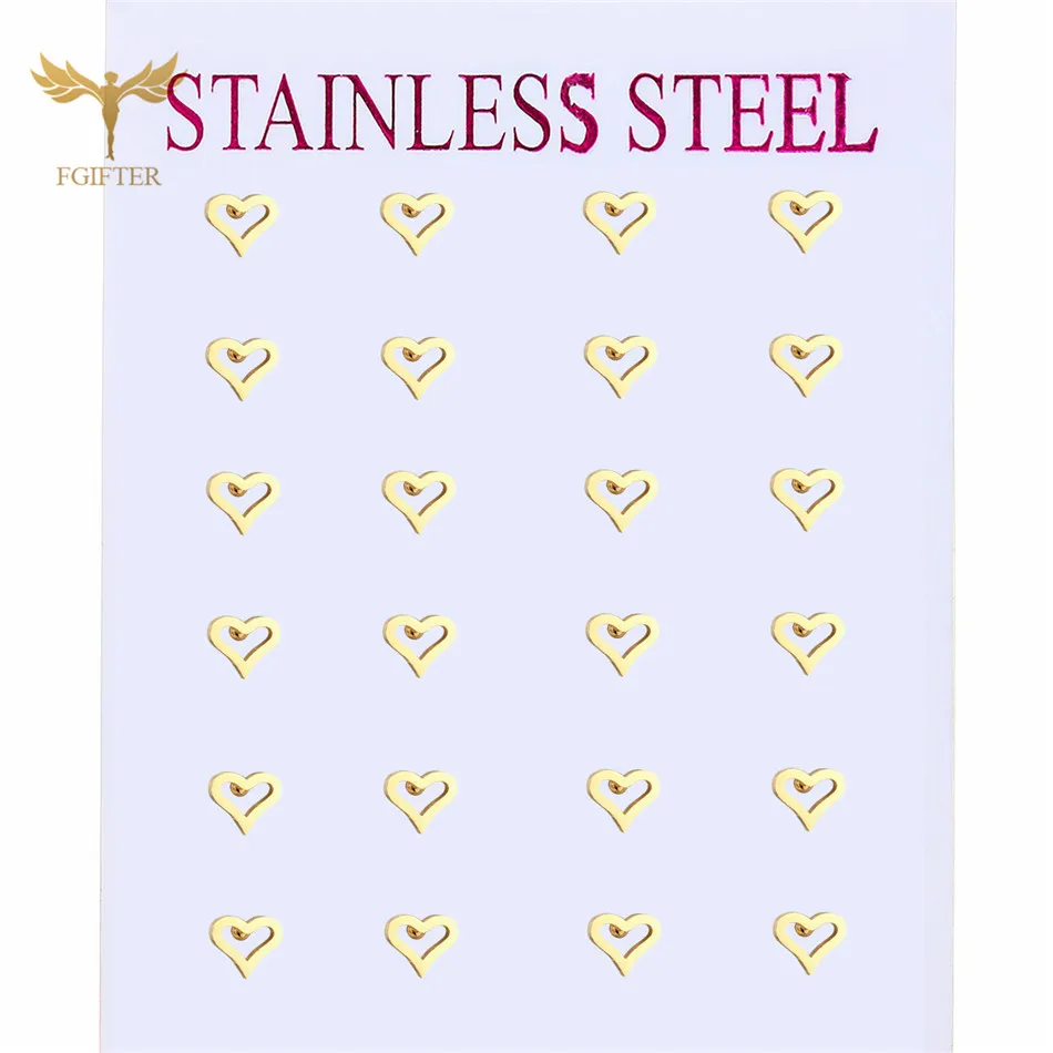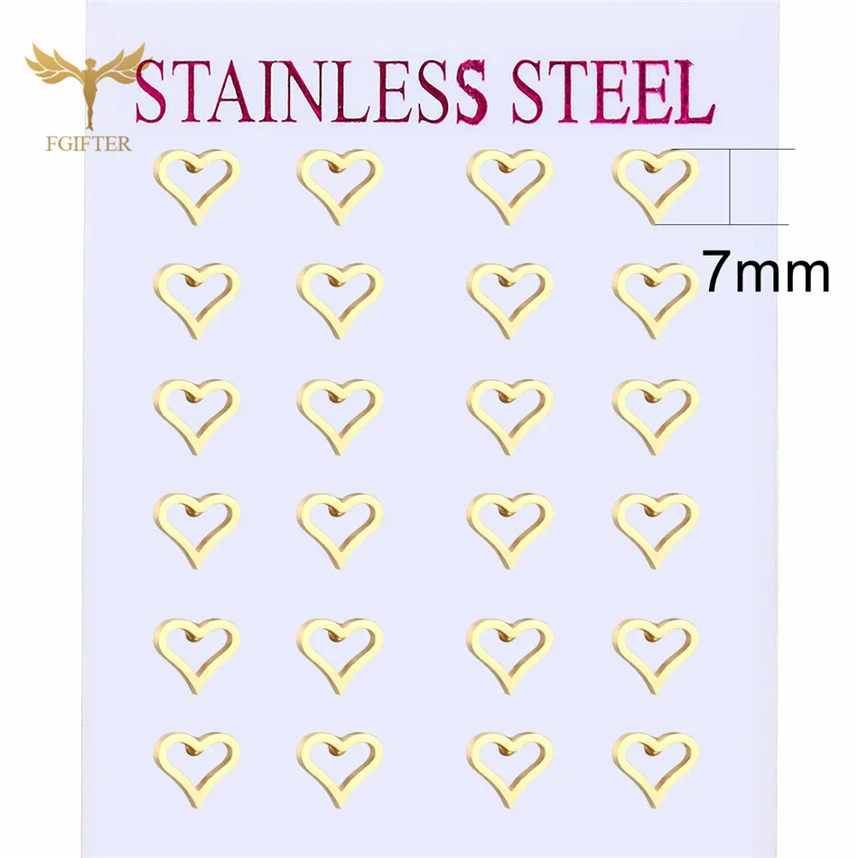 Материал: нержавеющая стальВысокое качество на 100% абсолютно новыйЦвет: золотые серьги с сердцемРазмер: 5 мм, 7 мм, 9 мм серьги-гвоздики в форме сердцаПожалуйста, обратите внимание: стиль сердца разрезается с помощью машины, размер имеет погрешность 0-1 мм, пожалуйста, поймите.Преимущество: не вызывает аллергии, не выцветаетКомплект: 12 пар/лот