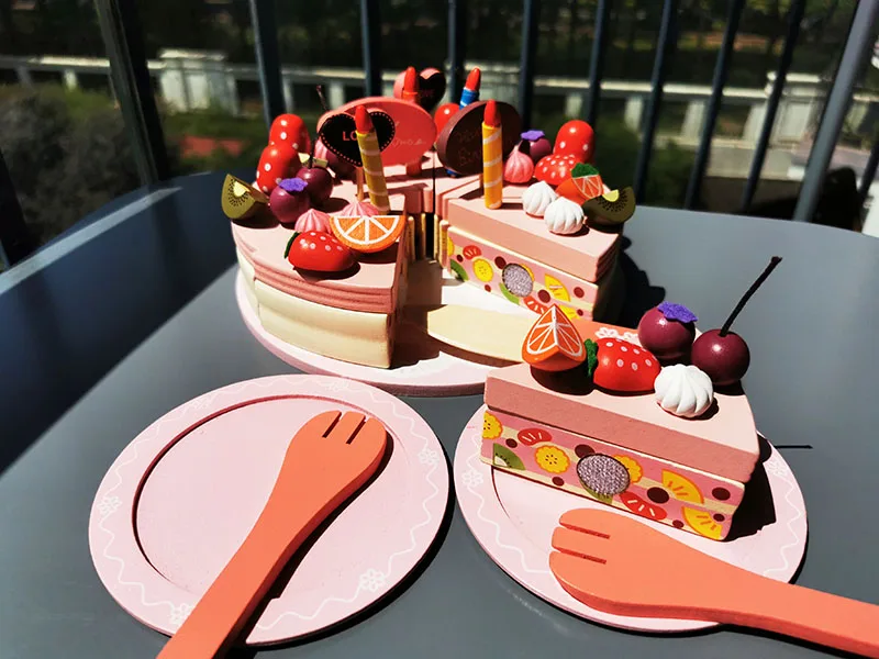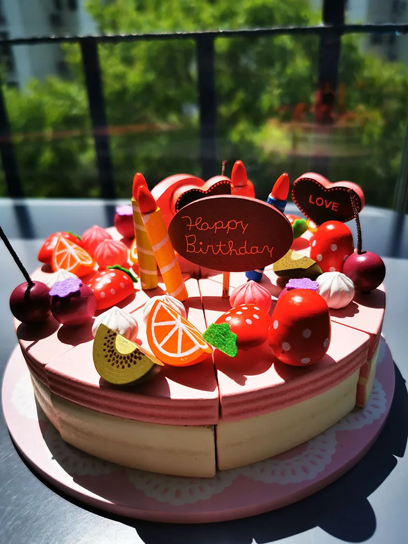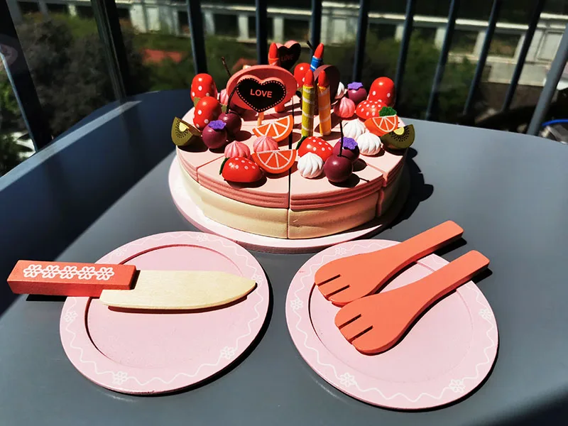 Детские магнитные Розовые Деревянные игрушки для торта на день рождениядеревянные кухонные торты двухслойные с клубникой, настоящая жизнь, ролевые игрушки