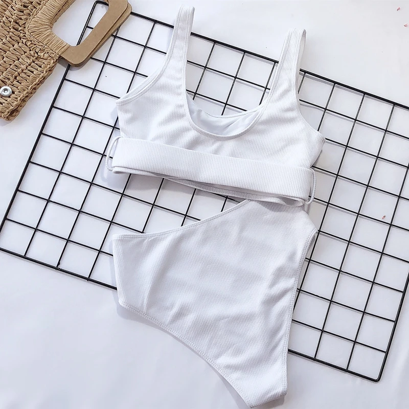 Сексуальное бикини с высоким вырезом, 2021, черно-белый, женский ку...