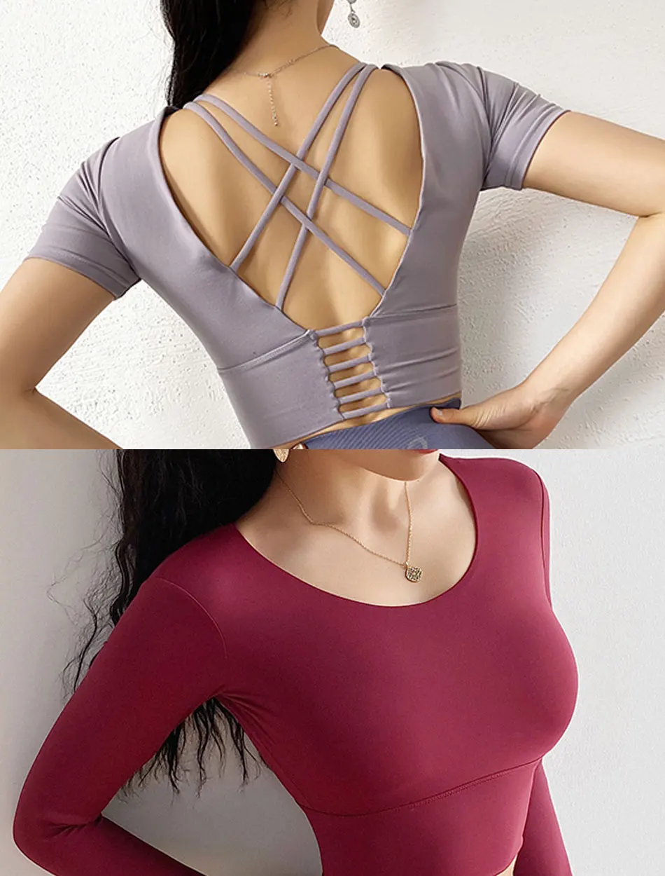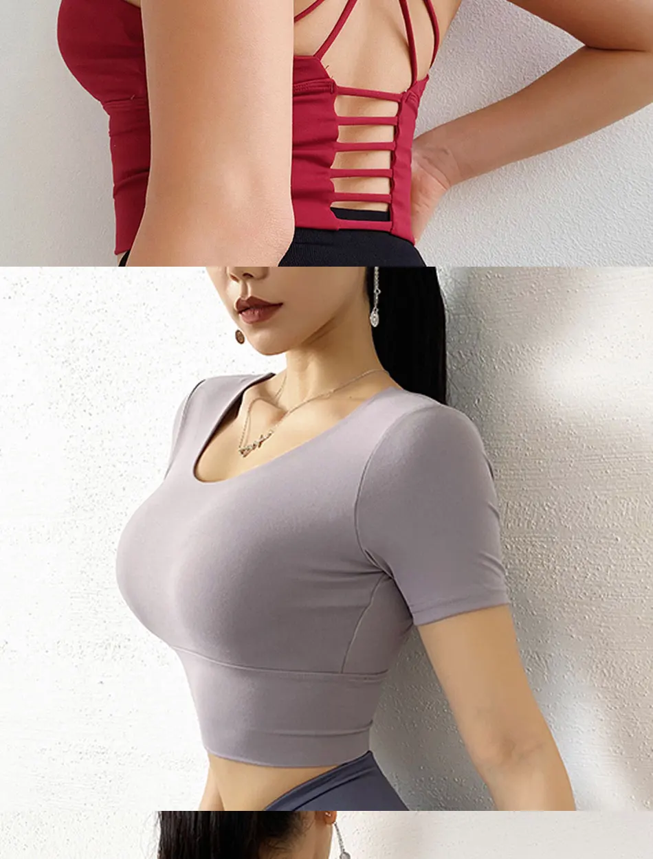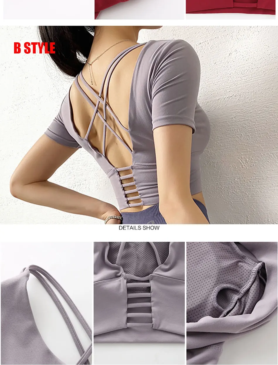 Женские рубашки с коротким рукавом для йоги с подкладкой внутри сет...
