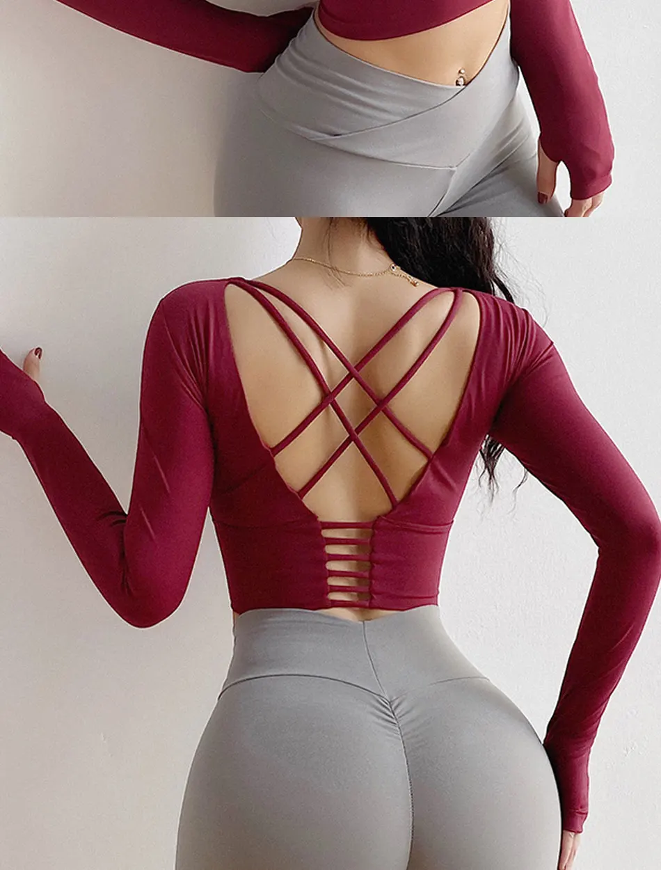 Женский бесшовный спортивный Топ с длинным рукавом и мягкой спинкой...
