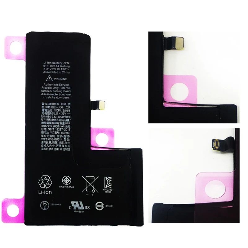 EENJEE оригинальный IC телефон батарея для iPhone XS XSMAX 11 11Pro 11ProMax SE2020 Высокая емкость Замена литиевых батарей МобильныйВнимание! Состояние батареи покажет «Сервис» с этим аккумулятором. Это не означает, что аккумулятор неисправен, но все аккумуляторы, замененные на iphoneXS, такие, независимо от того, оригинальный или нет аккумулятор.1. Продукт: аккумулятор сотового телефона 5 шт./лот для Iphone XS2. Емкость: 2658 мАч3. Батарея: используется высококачественный элемент, 100% реальная емкость, более 500 раз4. Материал ячейки: литий-полимерный 100% LiCoO2, более безопасный и длительный срок службы, не расширяется, не взрывается5.IC: оригинальный IC, оригинальная печатная плата!6. Защита: защита от перезарядки, переразряда, перегрузки по току, перенапряжения!7. Гарантия: 12 месяцев8. Качество: ORG класс, работа как оригинал, без оригинального логотипа.