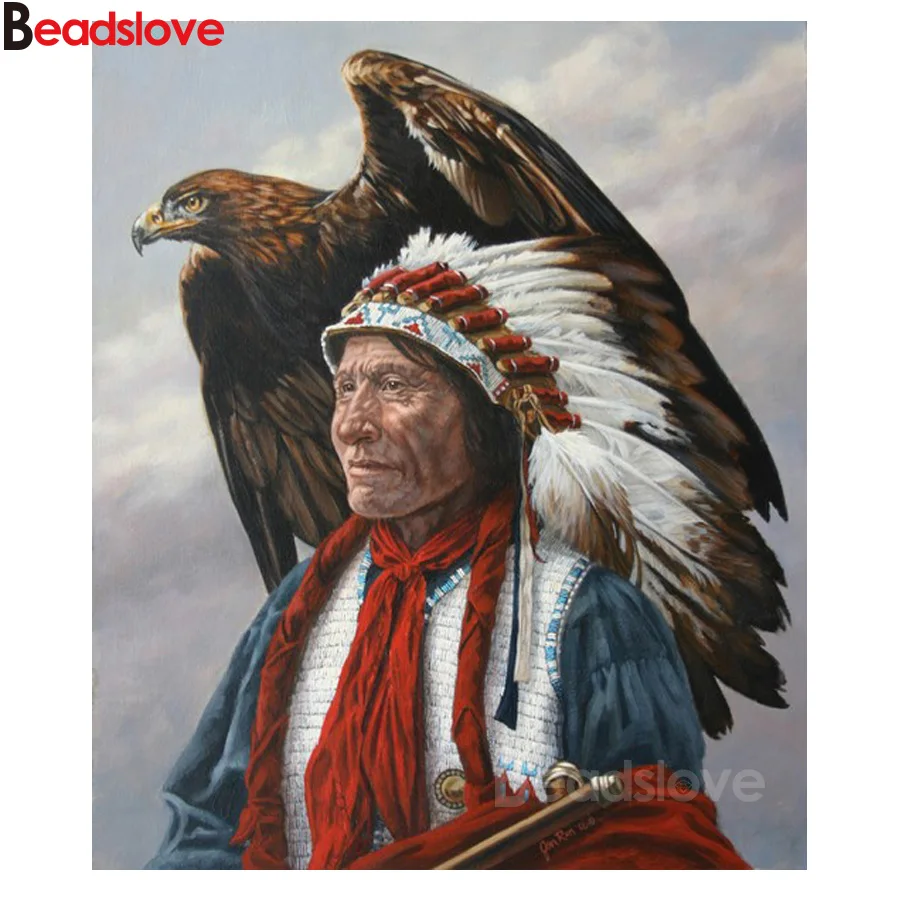 Полноразмерная Алмазная 5d картина сделай сам, круглая Алмазная мозаика, индийский воин с орлом, алмазная вышивка для украшения стен