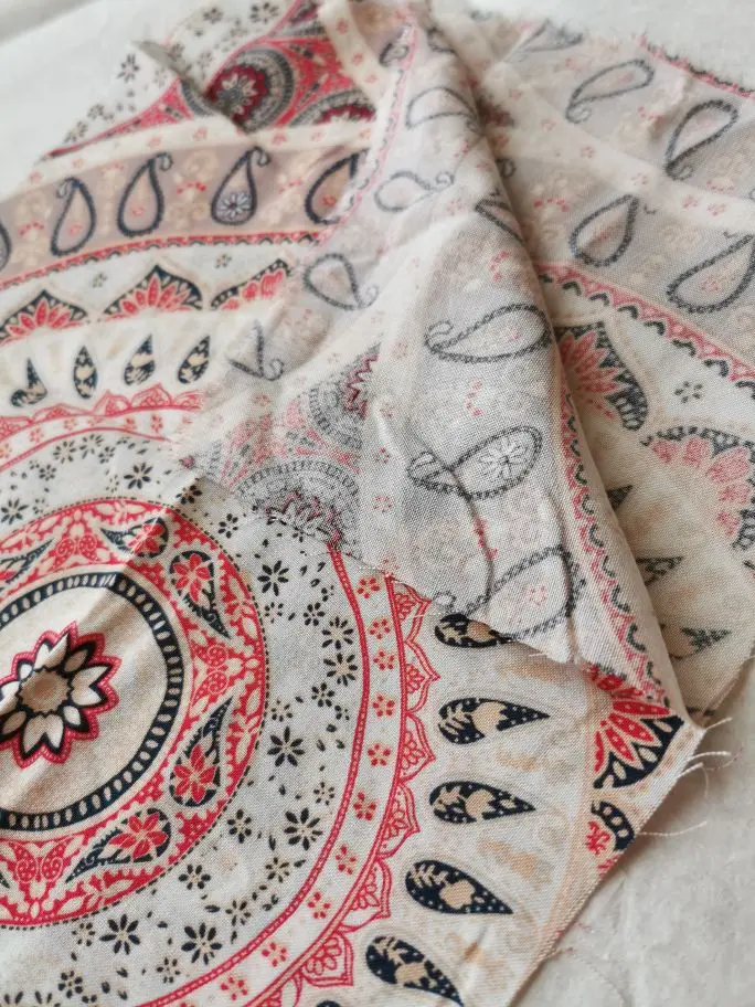 Очень красивая ткань, хороший размер, очень правильный принт, но ткань немного тонкая, немного прозрачная