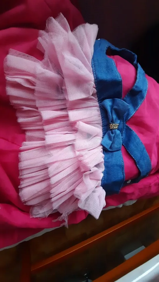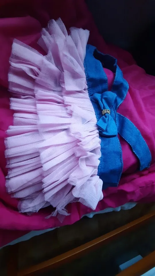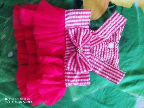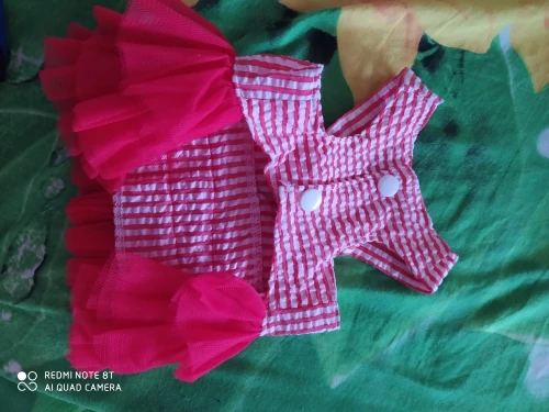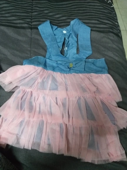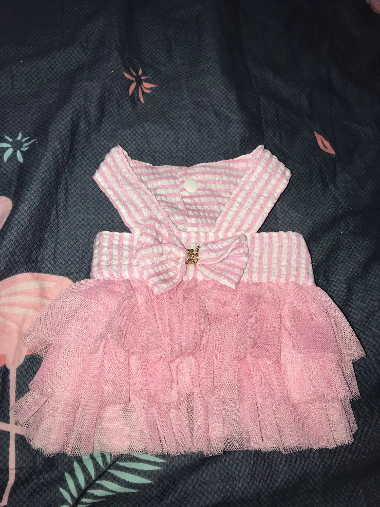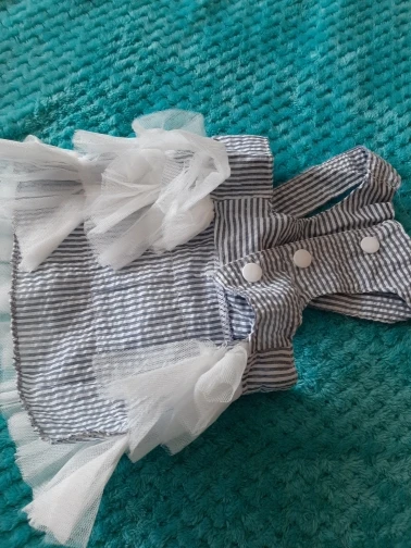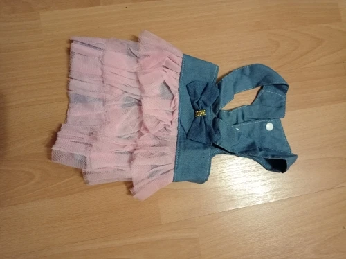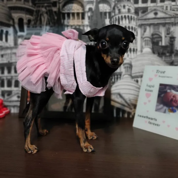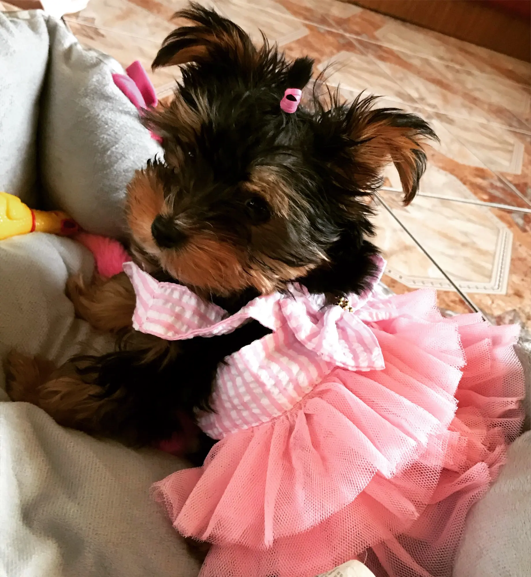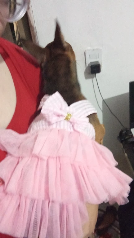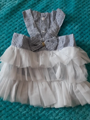 Платье классное. Доставка 17 дней. Единственное на Йорка 3,6 кг размер М очень велико по объему. Но мы худенькие. По длинне (длинна спинки 33 см) платье хорошо, а в объеме ушили и лямки убавили. Стало хорошо. Кружево мягкое, платье ничем не пахло.