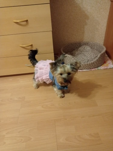Красиво. Но на йорка 3 кг великовато, ушьём немного.