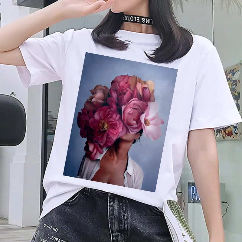 Женская Новинка 2020 harajuku белая футболка с винтажным цветочным ...