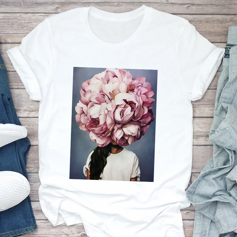Женская летняя футболка с коротким рукавом и цветочным принтом, 202...