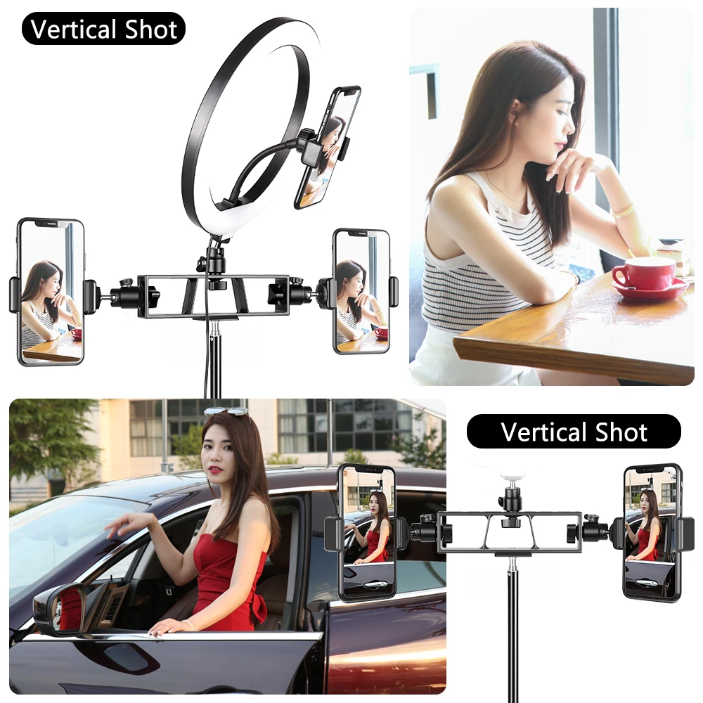 1x10 дюймов кольцевой светильник1 x зажим для телефона3 шаровая Головка2 x стандартный зажим для телефона1 х три типа поддержкиШтатив-стойка 1x68 см