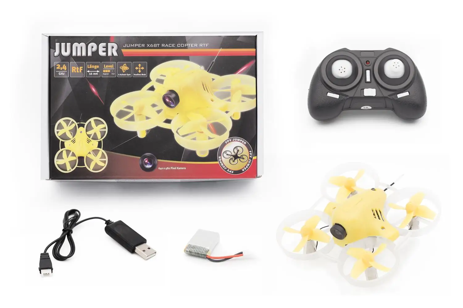 Джемпер X68T Micro quad станет идеальным дополнением для вашего t8sc. Маленький размер, но большой по веселью, X68T легко летает и делает идеальный Дрон для начинающих или закрытый гонщик FPV для более опытных пилотов. Нет сложного компьютерного программного обеспечения для установки с помощью X68T, просто зарядите аккумулятор и Привяжите его к t8sc, чтобы быть в воздухе, летающем, как профессионал в течение нескольких минут.