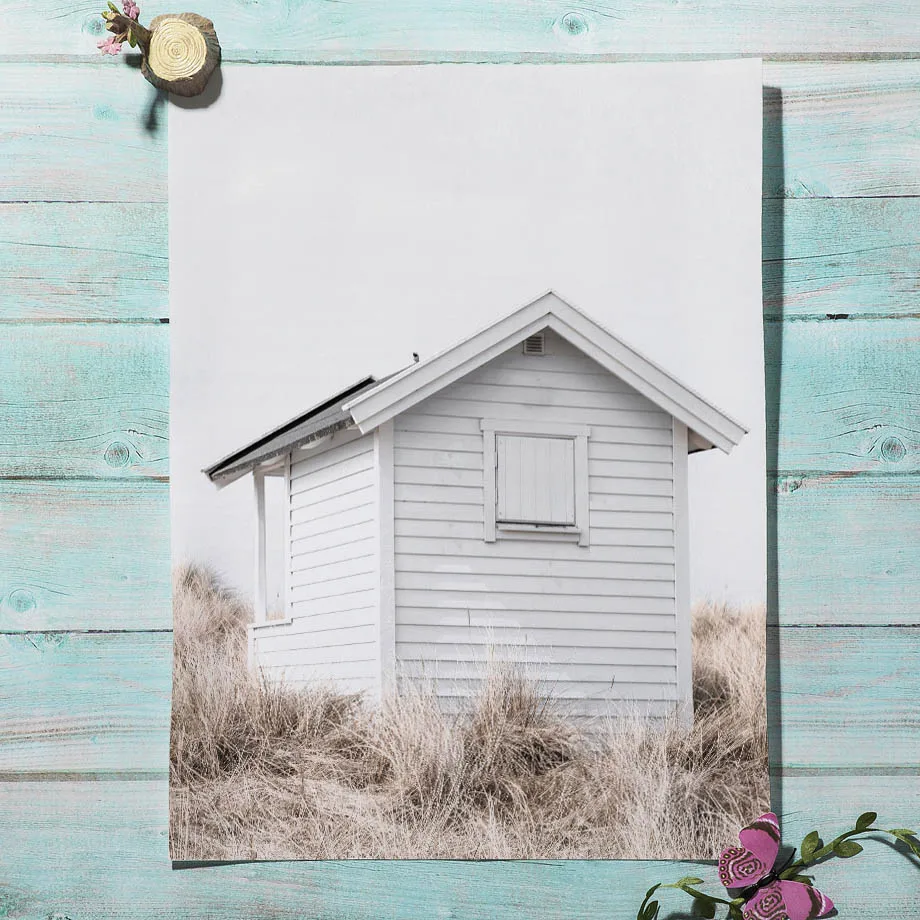 Настенная картина с изображением пляжа, бежевой травы, дома, лодки,...