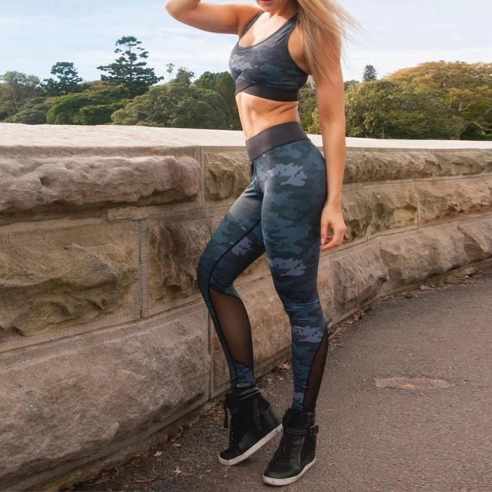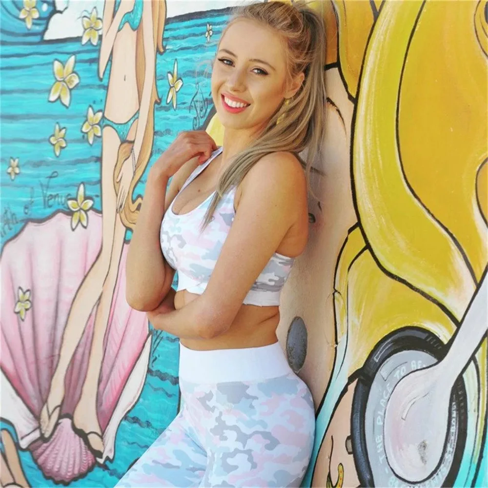 Женский Камуфляжный комплект одежды для йоги с леопардовым принтом, укороченный топ и штаны для бега и бега, женская одежда для тренажерного зала и фитнеса, одежда
