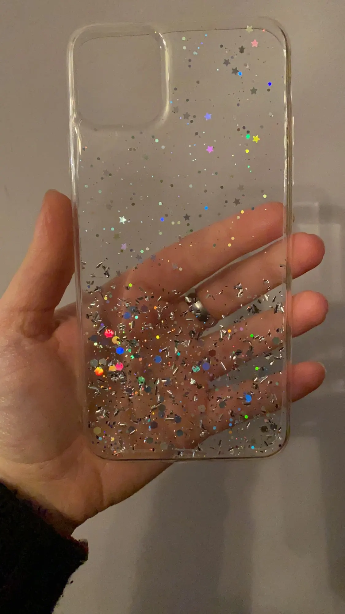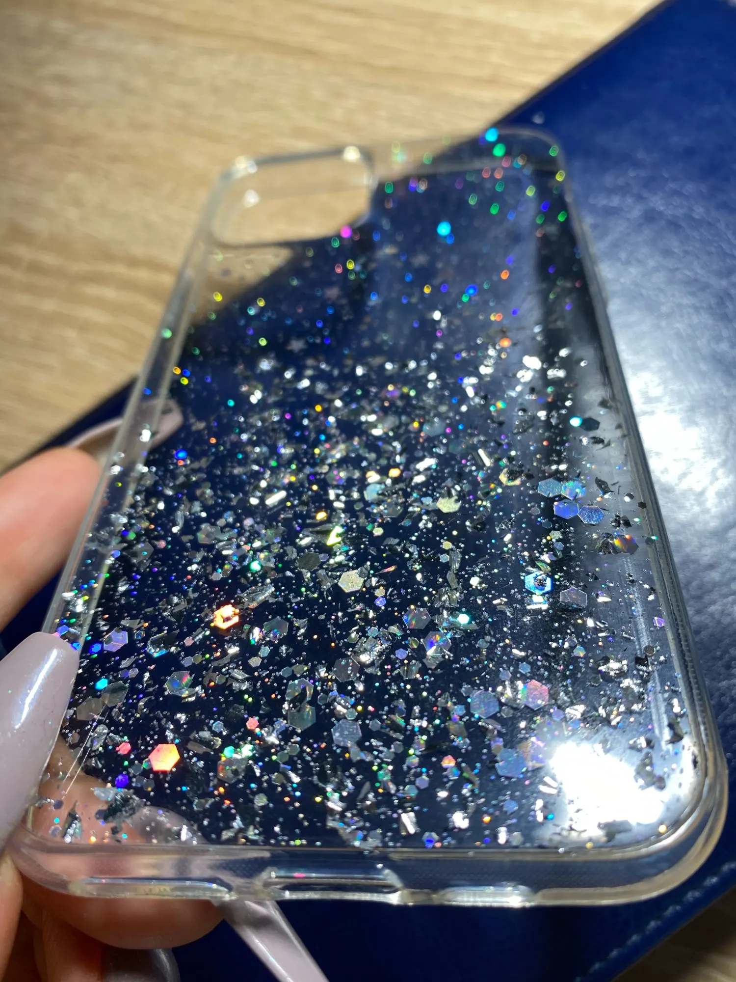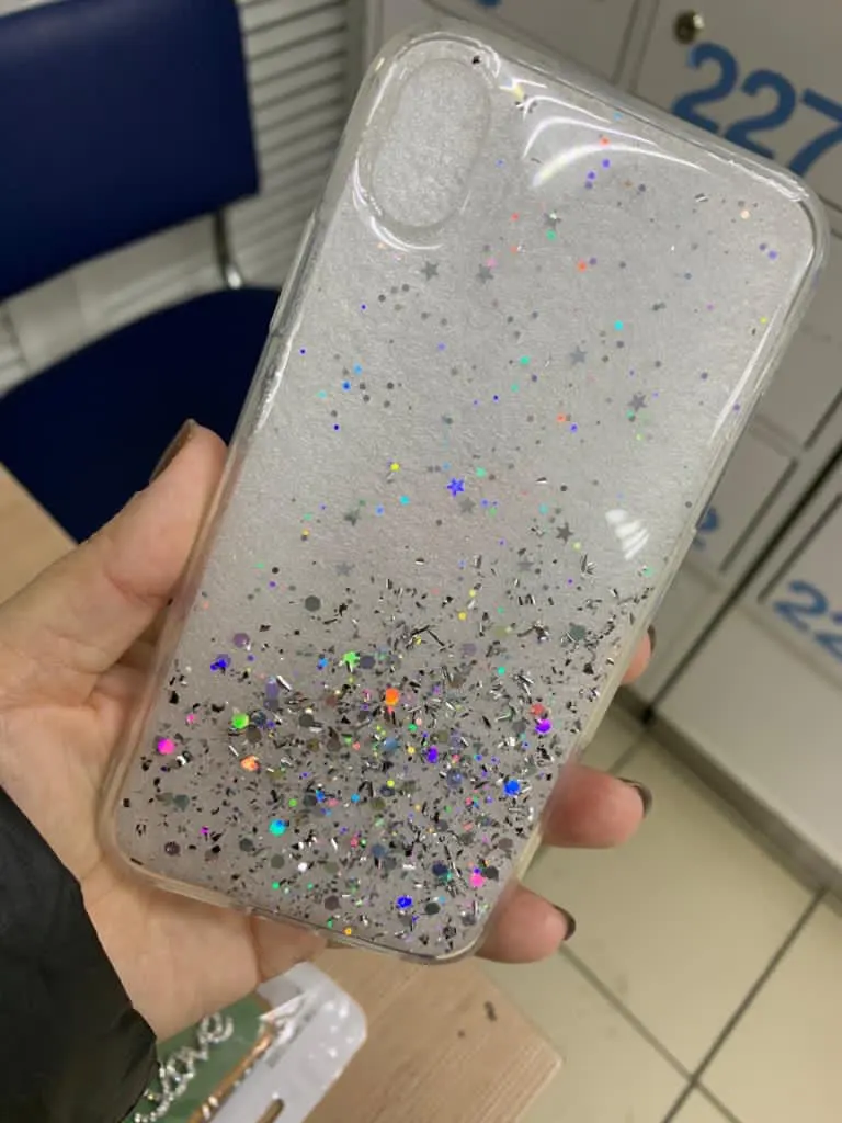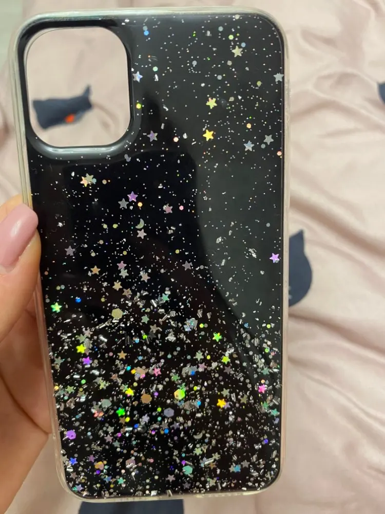 Чехол хороший , брала на айфон 11 ) подошёл без проблем , тока блёстки не двигаются как приклеенные..