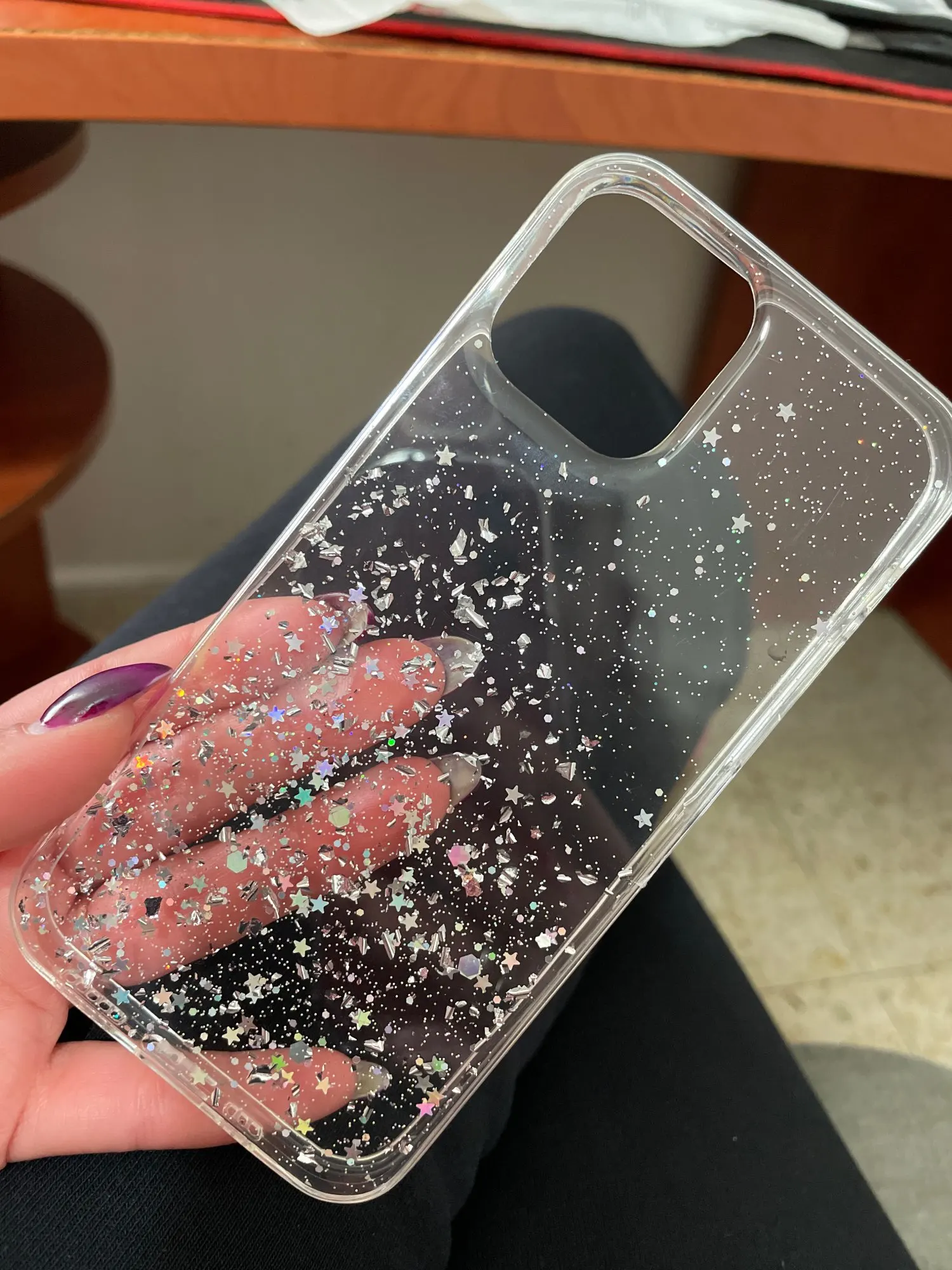 чехол очень клёвый , но я думала внутри будет вода и блестки будут переливаться. но и так тоже круто!
