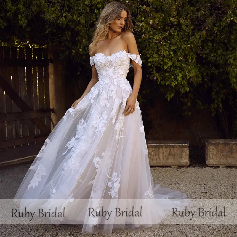 Винтажное свадебное платье-трапеция, длинное свадебное платье цвета шампанского, белое кружевное свадебное платье с открытыми плечами, 2021