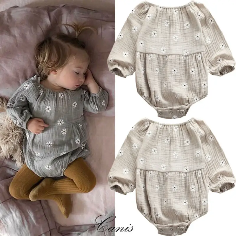 Комбинезон детский с цветочным принтом, хлопок, лен, весна-осень