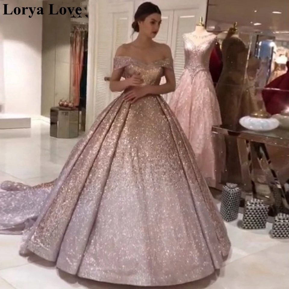 Блестящие розово-золотые платья для выпускного вечера, бальное плат...
