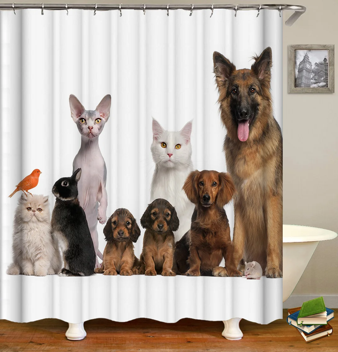 Занавеска для душа с изображением кота, собаки, слона, льва, водонепроницаемые шторы для ванной из полиэстера, высококачественные моющиеся декоративные шторы для ванной комнаты, шторы для душа