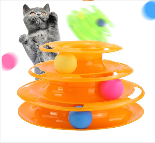 Трехуровневая игрушка для питомцев, игрушка для кота, башня, трек, диск, развлечения, тройная пластинка для тренировки, развлечения