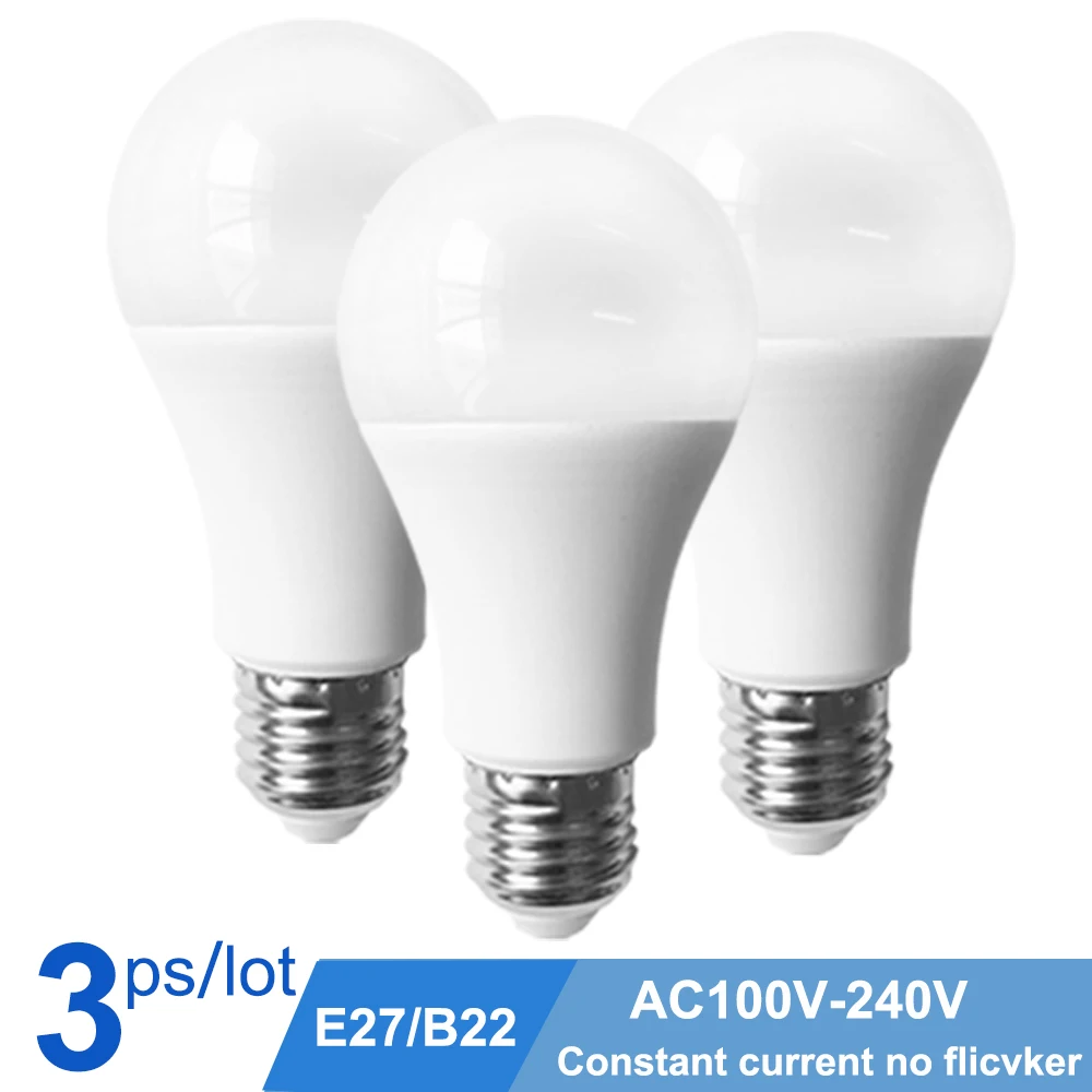 Светодиодный ная лампочка E27 B22 3 Вт 6 Вт 9 Вт 12 Вт 15 Вт 110 В 220 В, точечные светильники 2835 Светодиодный Освещение для домашнего интерьера стола, 3 шт.