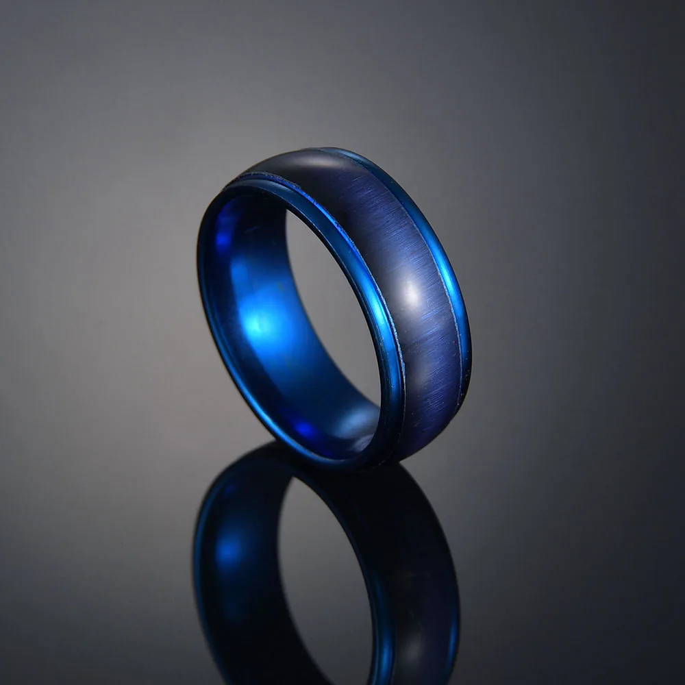 Мужское кольцо из нержавеющей стали, черного и синего цвета, 8 мм