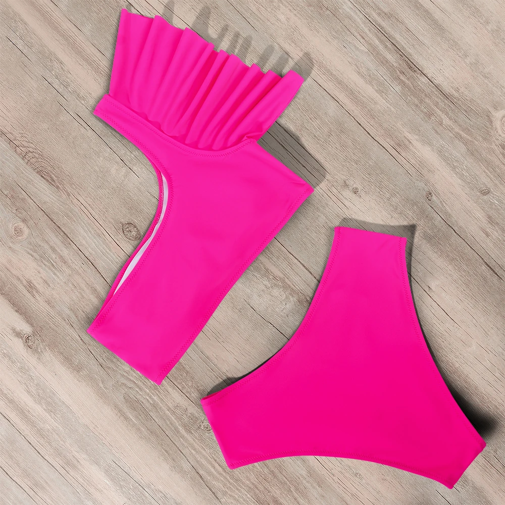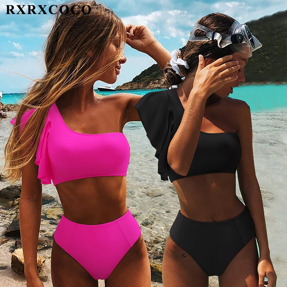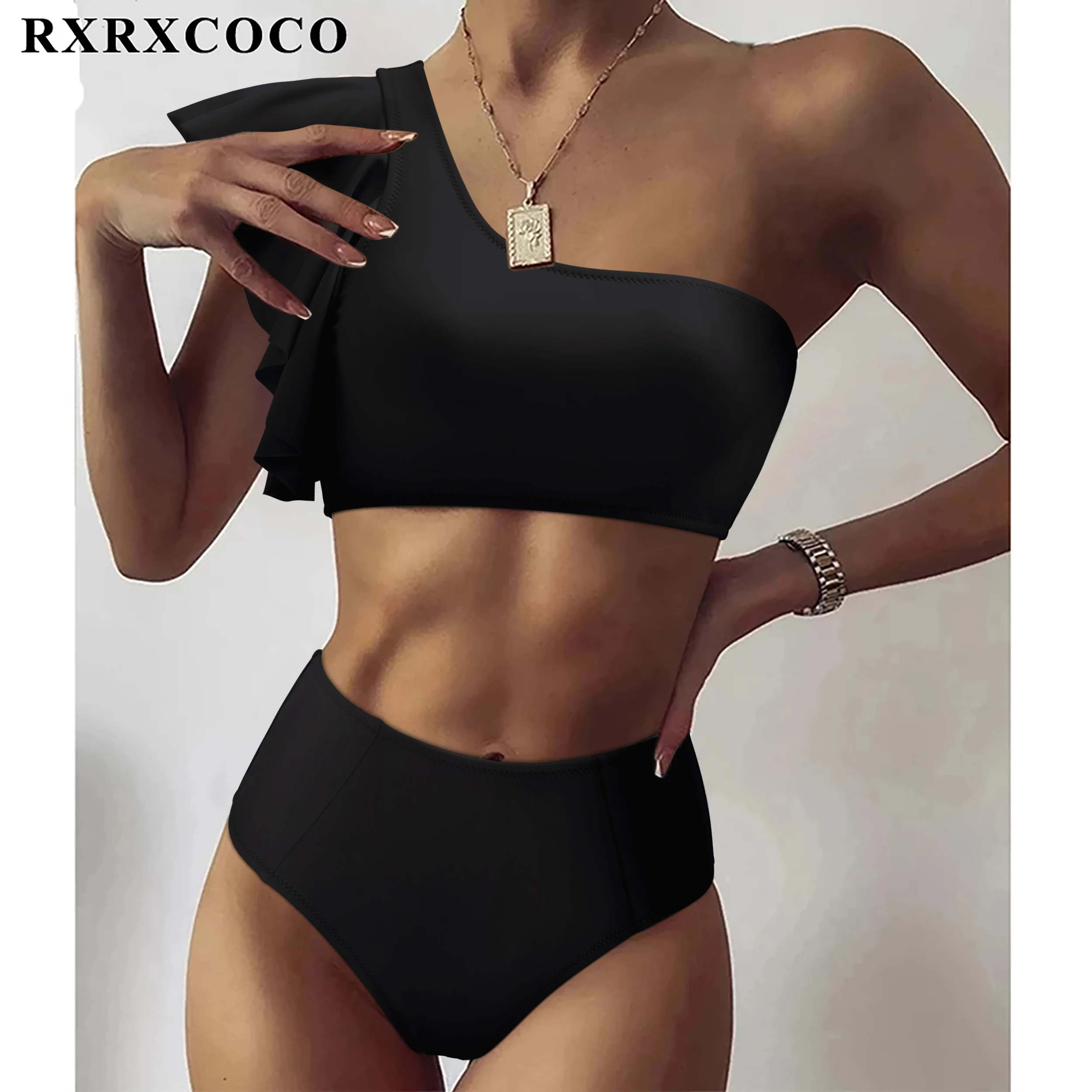 RXRXCOCO бикини 2021, женская пляжная одежда с высокой талией, пуш-ап, женский купальный костюм, Леопардовый женский купальник на одно плечо