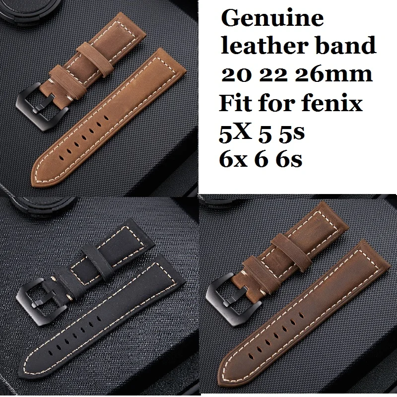 Для Garmin Fenix 5 / 5X Plus 6 / 6X Pro Смарт-часы кожаный ремешок Ремешок Браслет 20 22 мм 26 мм Быстросохнущий браслет