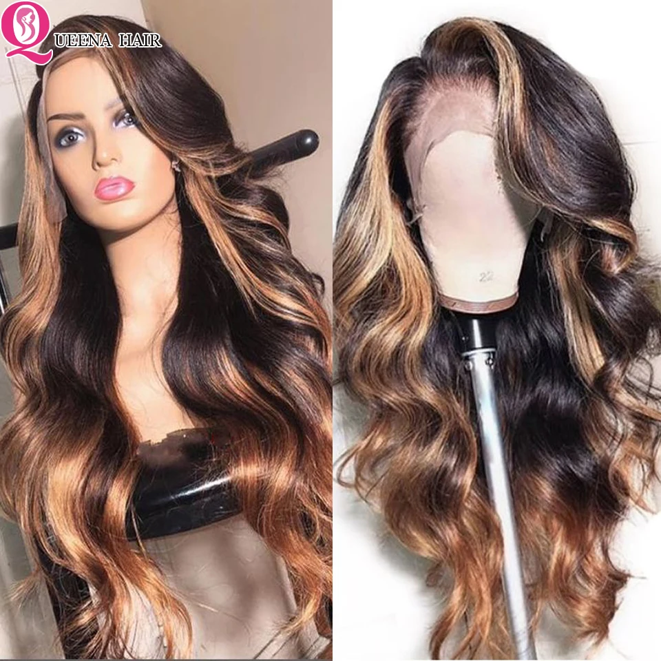 Блондинка изюминка парик шнурка 1B 27 объемная волна Синтетические волосы на кружеве парики из натуральных волос на кружевной эффектом деграде (переход от темного к обратили внимание перуанские человеческие 13x4 Синтетические волосы на кружеве парик
