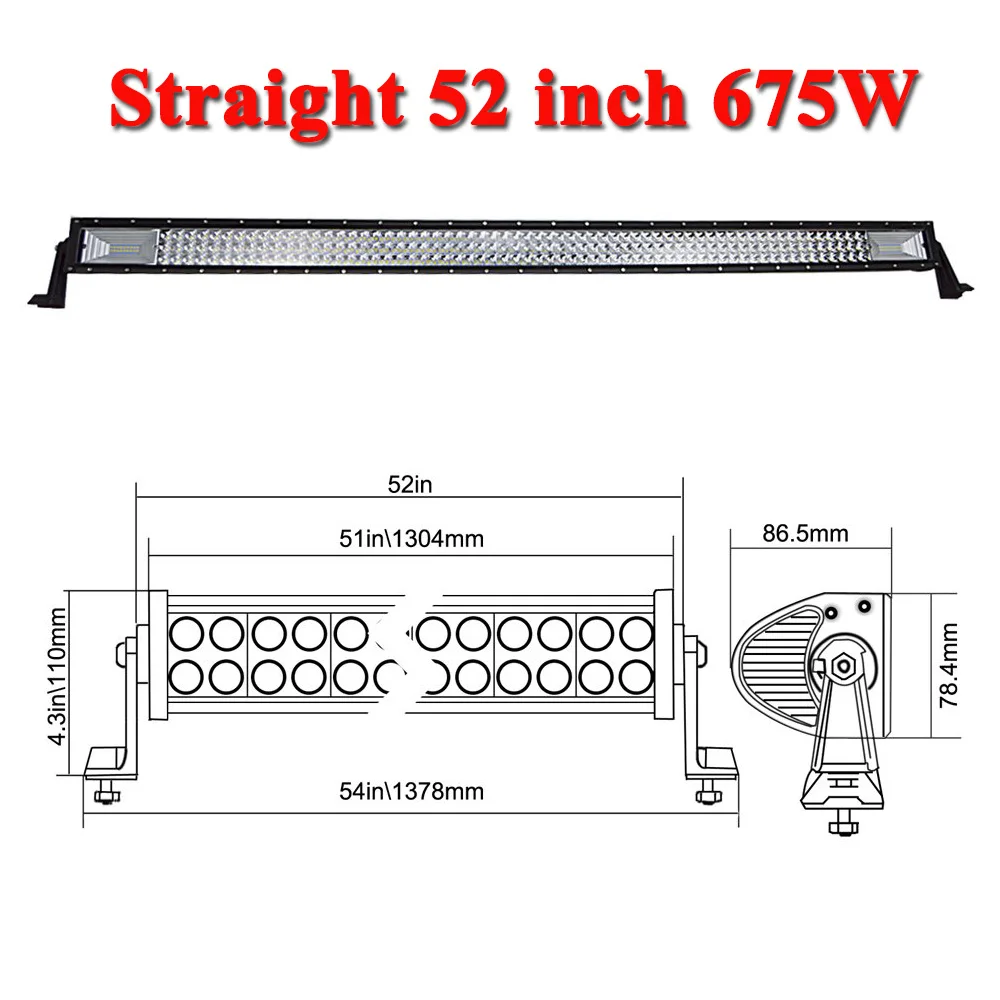 52 дюйма 675 Вт прямой трехрядный светодиодный бар с жгутом проводов