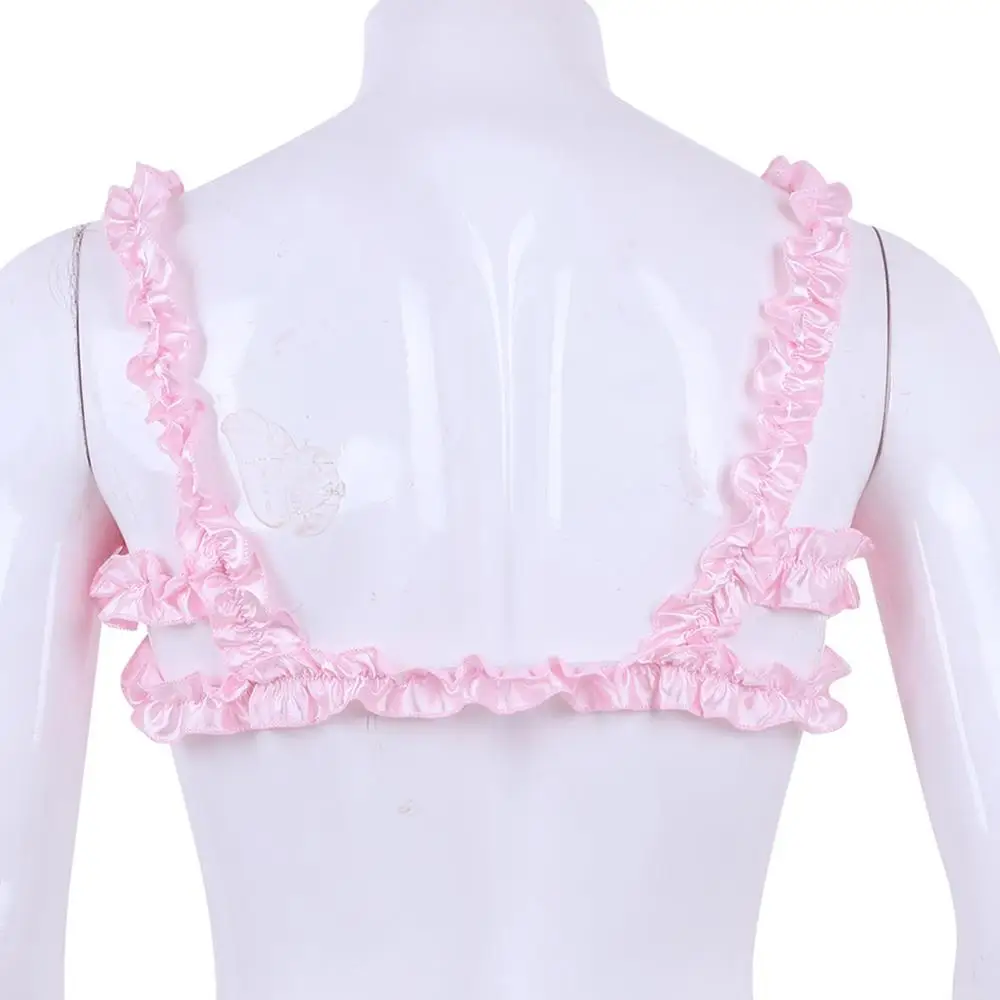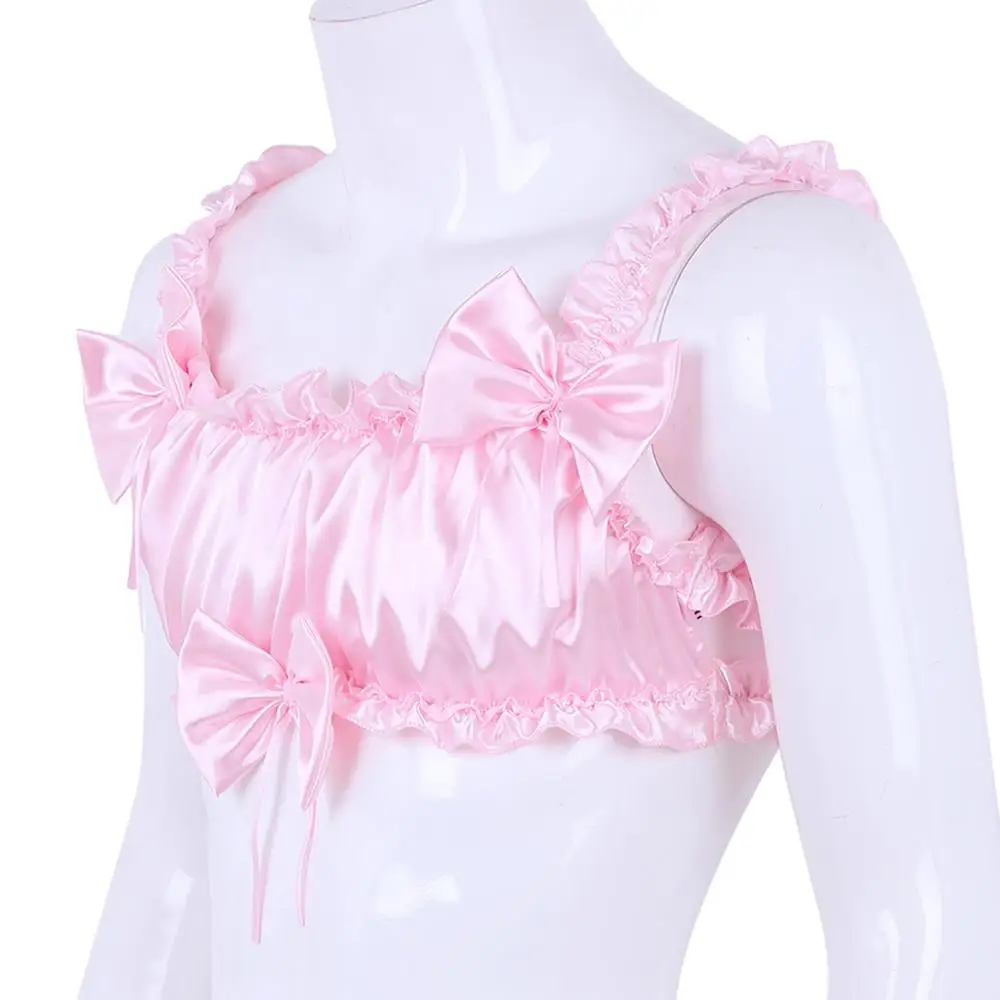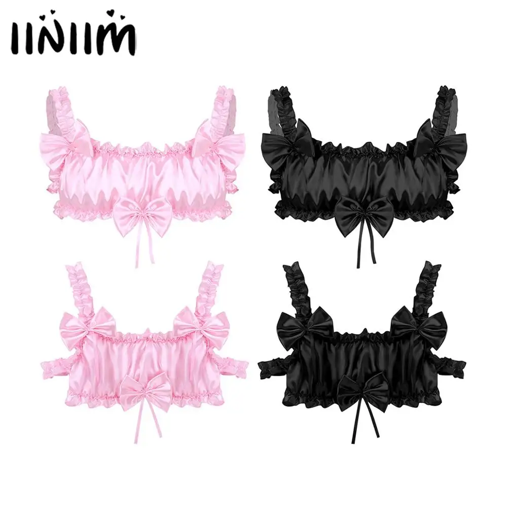 Мужское нижнее белье Sissy, экзотические атласные майки с рюшами и эластичными бретелями, укороченный топ с бантиками и открытой спиной, бюстгальтер без косточек