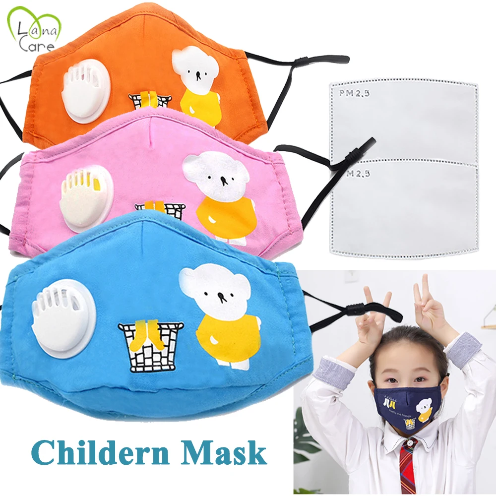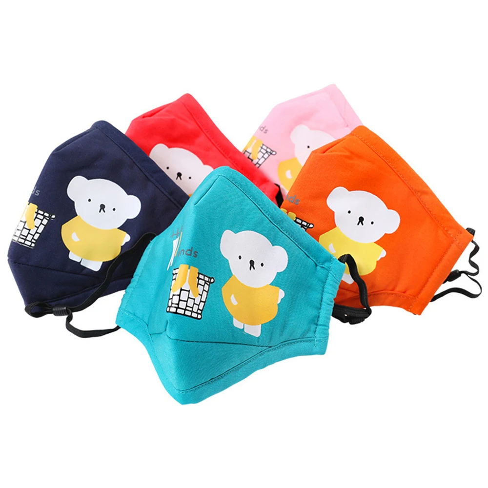 Маска для лица с медведем многоразовая с дышащим клапаном, хлопок, милые Мультяшные фильтры для детей, PM2.5, Пылезащитная маска для лица, 1 шт.