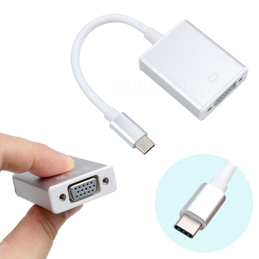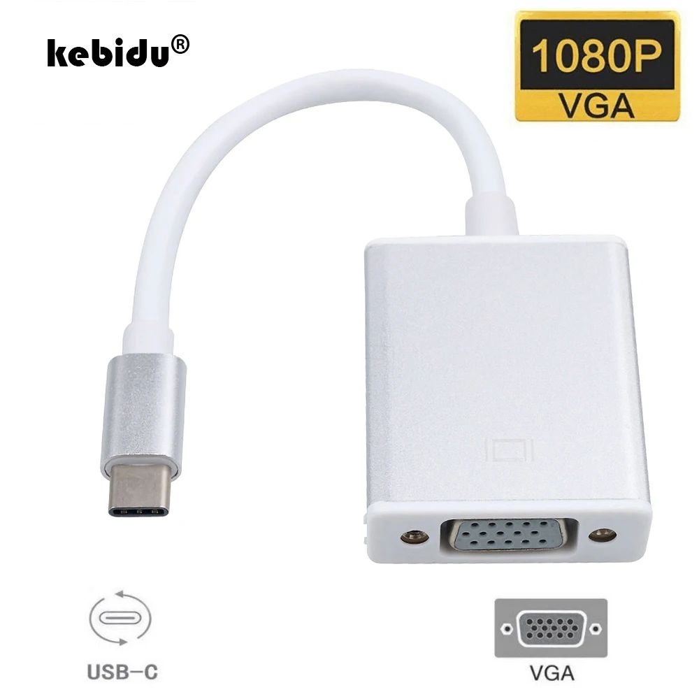 Кабель-адаптер kebidu с разъемом типа C на гнездо VGA, USBC USB 3,1 на VGA, адаптер для Macbook 12 дюймов Chromebook Pixel Lumia 950XL, серебристый