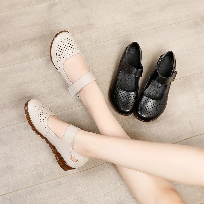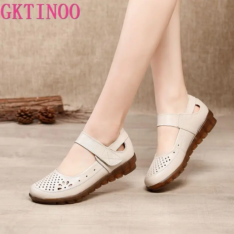 Женские босоножки на плоской подошве GKTINOO, из натуральной кожи, с вырезами, с круглым носком, мягкие, удобные, для лета