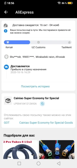 Долгая доставка. Ровно 2 месяца до Ашкелона. Сам товар замечательный. Фонарик светит достаточно ярко. зарядки хватает на долго. магазин хороший, упаковка хорошая. только посылка ехала через Узбекистан. но это проблема почты и пандемия .