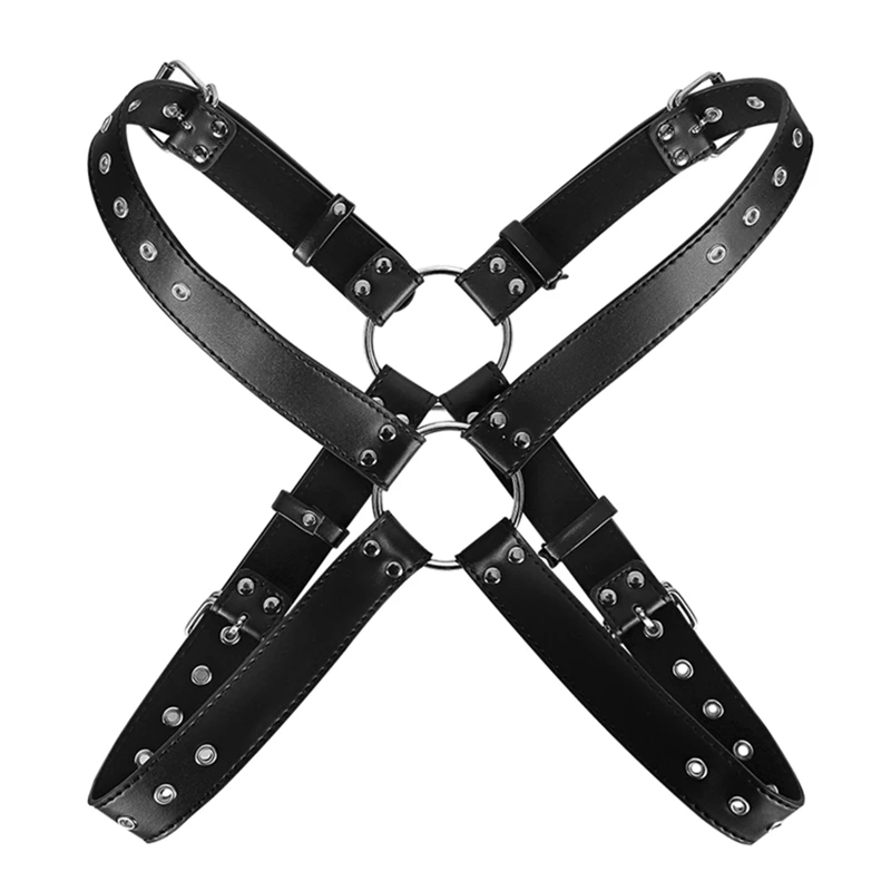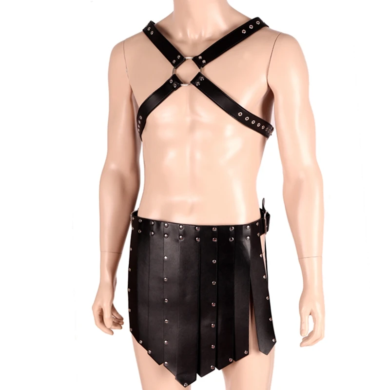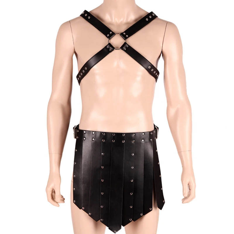 Из искусственной кожи Регулируемый мужской комплект, нагрудный ремень для тела сексуальное БДСМ-белье с заклепками, готический Рейв, костюм бандаж, экзотическое Мужское нижнее белье для взрослых