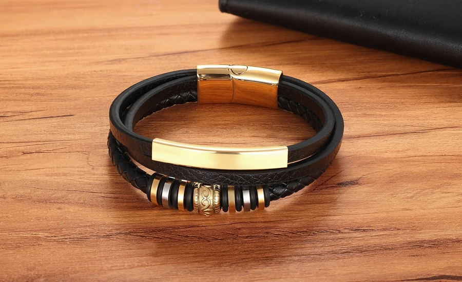 Браслет для мужчин, многослойный браслет из натуральной кожи, с магнитной застежкой, плетеный, многослойный, модный, браслет на руку