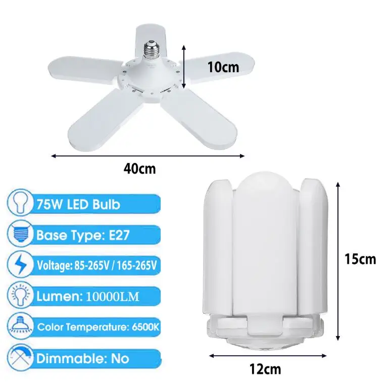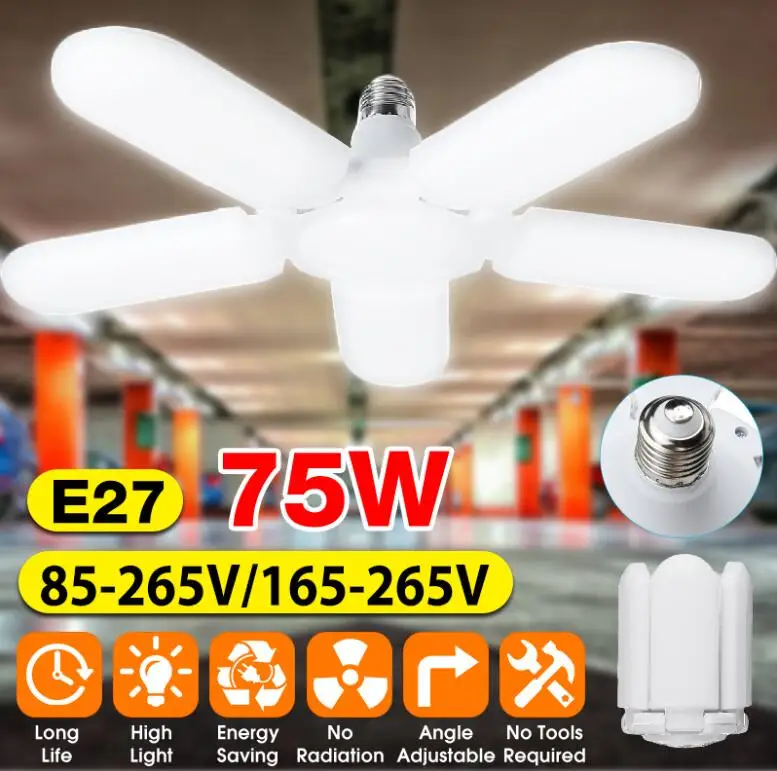 10 000 лм 75 Вт E27 5 лезвий 85-265 в светодиодный гаражный светильник s деформируемый потолочный светильник люстра лампа