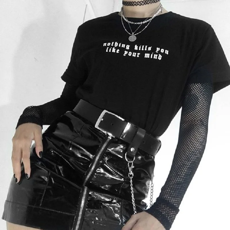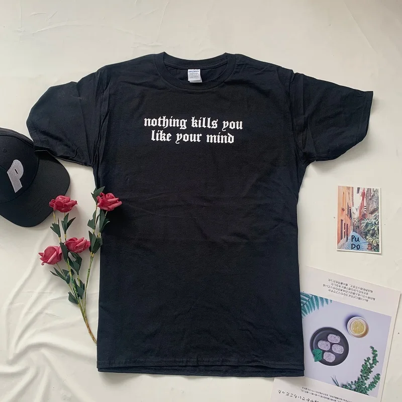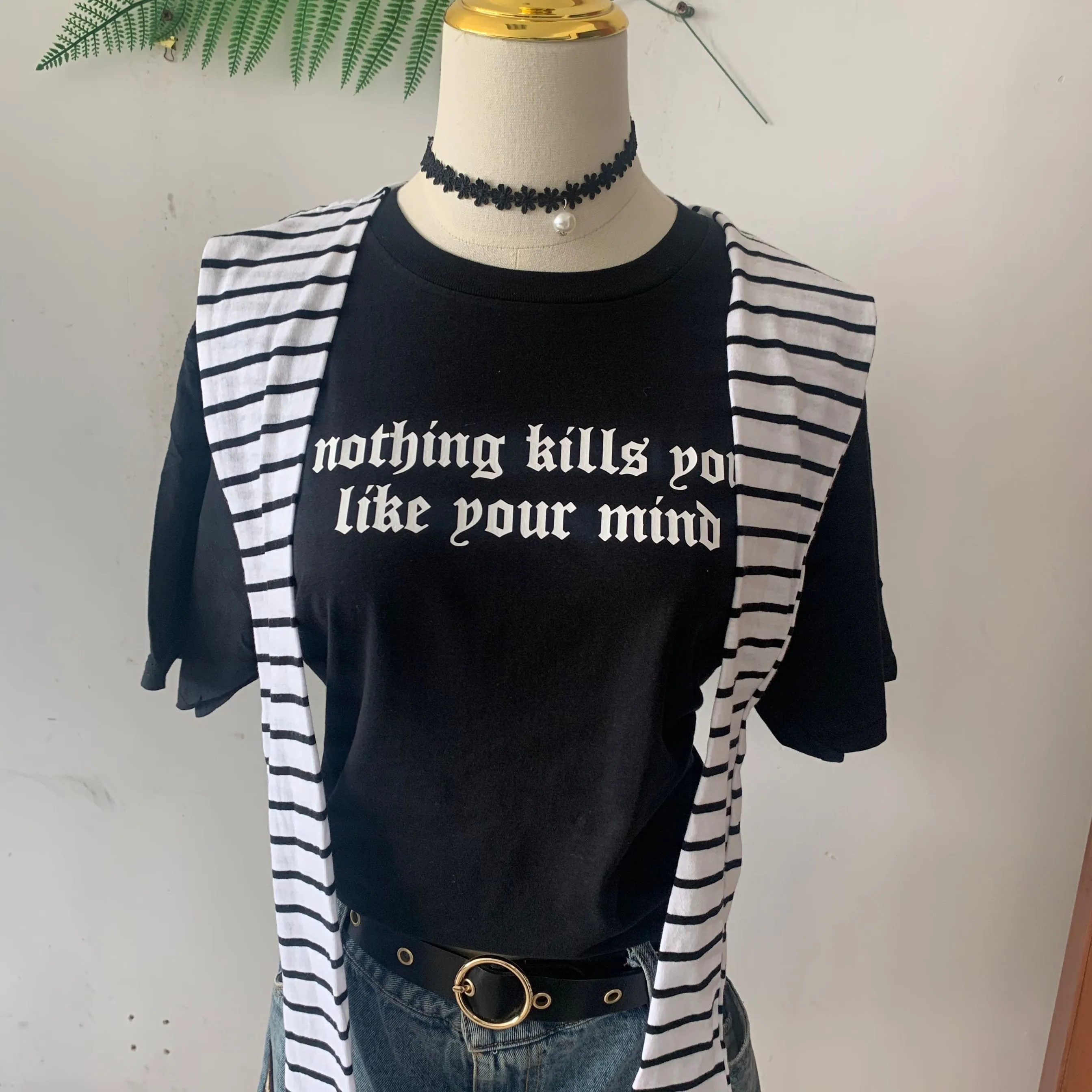 Новое поступление, черная женская футболка sunfiz YF, с надписью Nothing Kill You.Like Your Mind, Повседневная забавная футболка в стиле Харадзюку