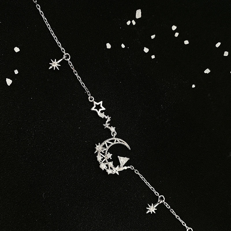 Блестящее серебро 925 пробы, кубический циркон, луна, тянущиеся ожерелья для женщин, свадебные украшения, простая цепочка для ключицы, колье, ожерелье, подарок
