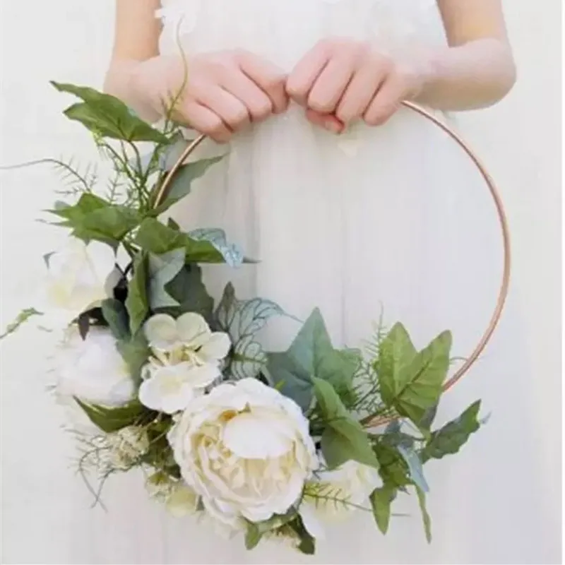 Свадебный венок, портативная золотистая железная металлическая гирлянда с кольцом 10-40 см, Свадебный веночек, стойка для искусственных цветов, уловитель декоративный обруч