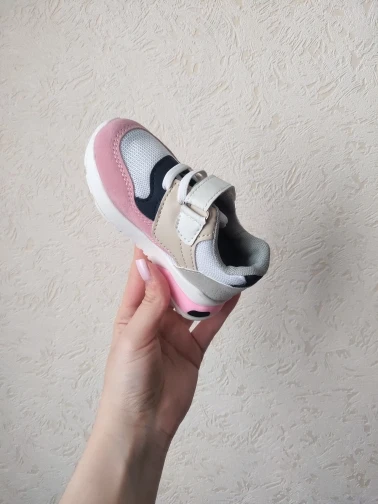 Отличные кроссовки на весну-лето! Качество прекрасное, размер точно соответствует таблице (длина стельки 17см). Запаха почти не было. На ноге сидят хорошо, дочь сказала, что удобные. Не тяжёлые. Подошва гибкая. Цвет как на фото, выглядят очень стильно. При транспортировке чуть примялась пятка, но незначительно, внешне незаметно, на функционал не повлияло. Приехали быстро, дней за десять с доставкой в Пятёрочку. Продавца рекомендую!