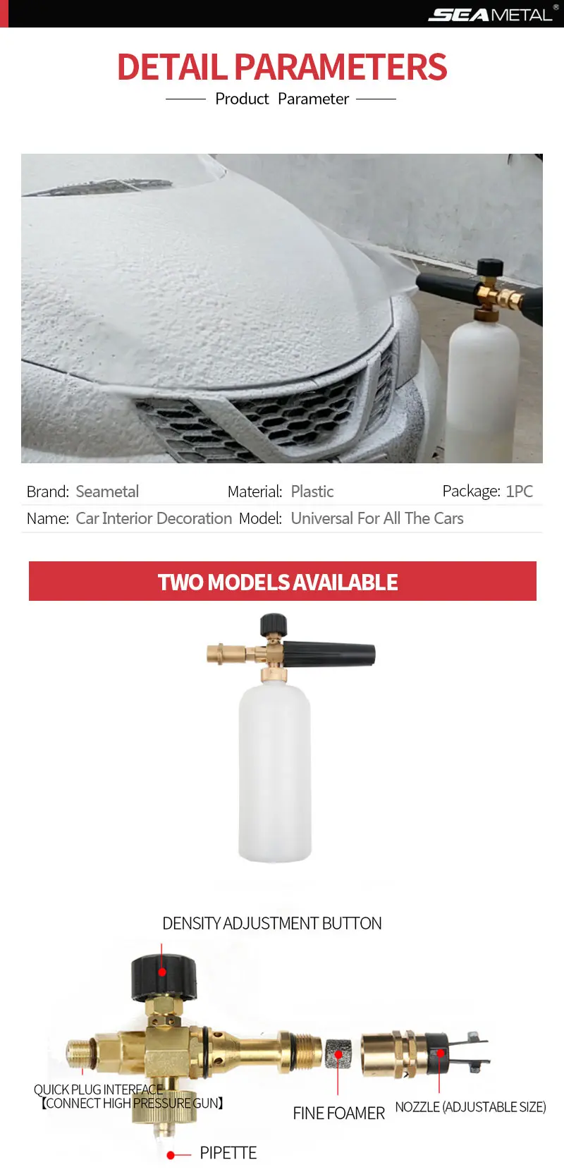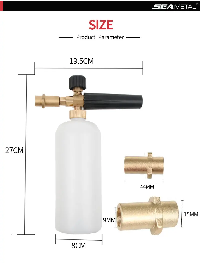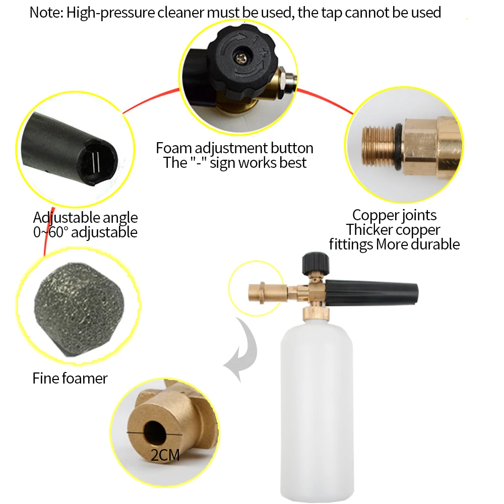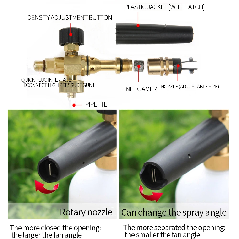 Пеногенератор высокого давления для автомобилей, Профессиональная Регулируемая пенообразовательная пушка, латунное сопло, для мойки автомобиля, для снежной пены