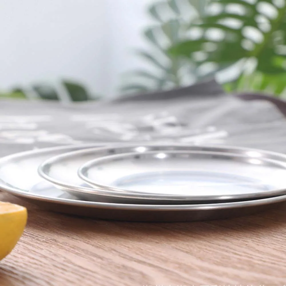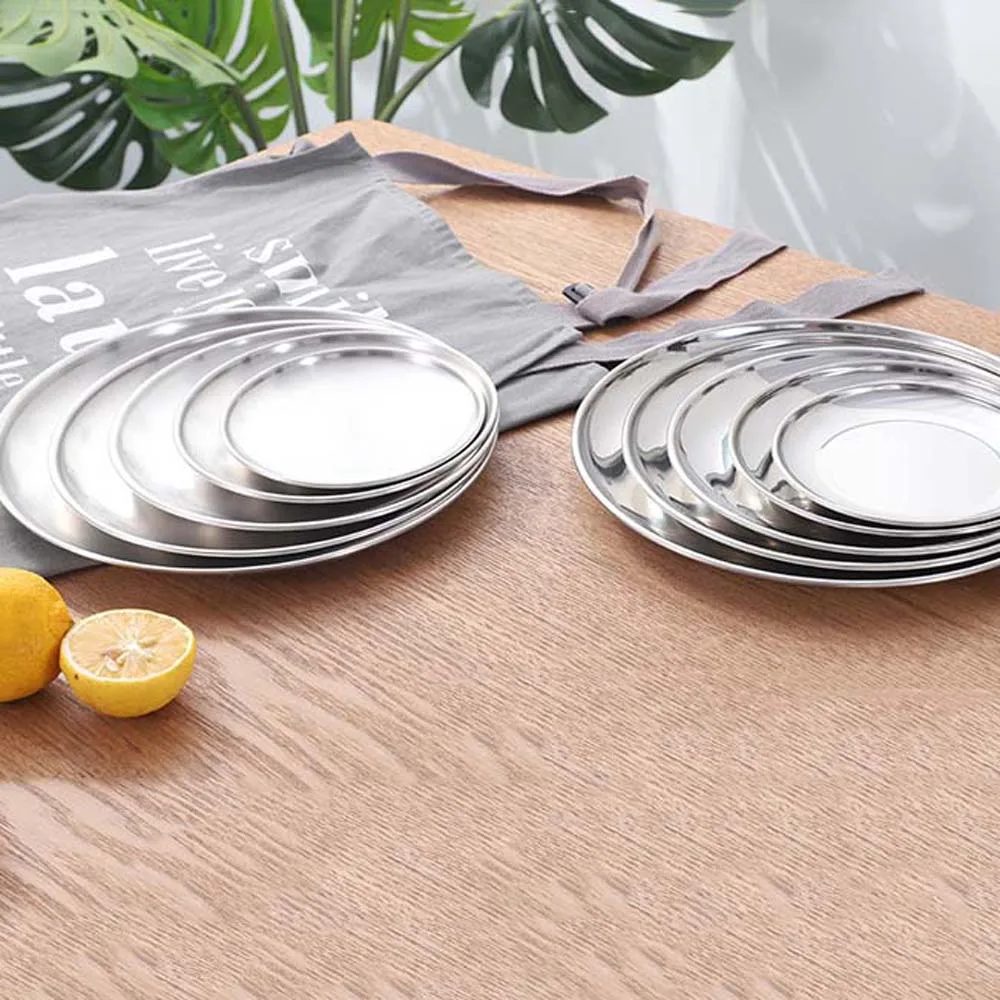 Высококачественный корейский Круглый Поднос из нержавеющей стали для стейка, однослойный зеркальный поднос для стейка с отделкой Hairline, фотография
