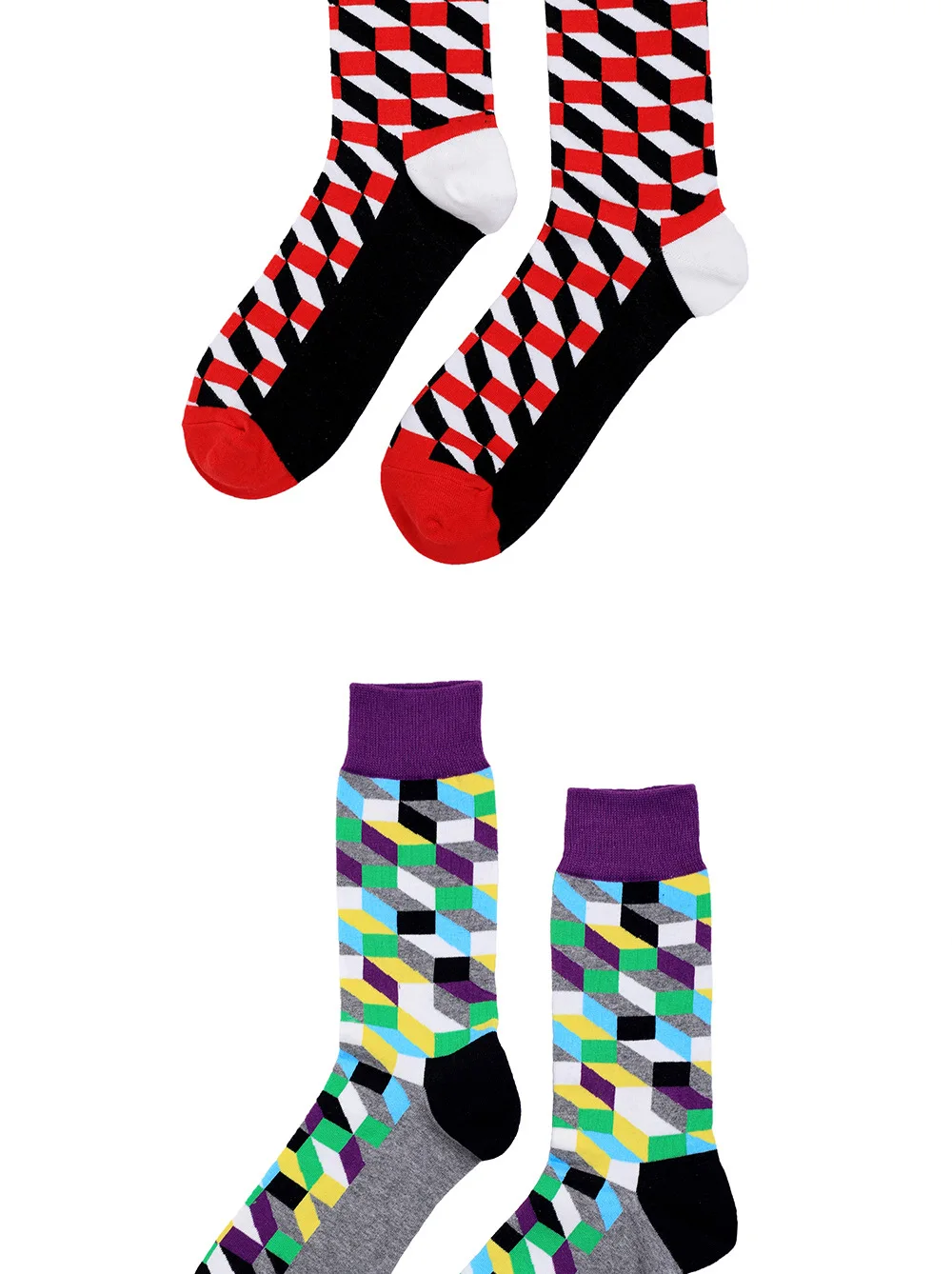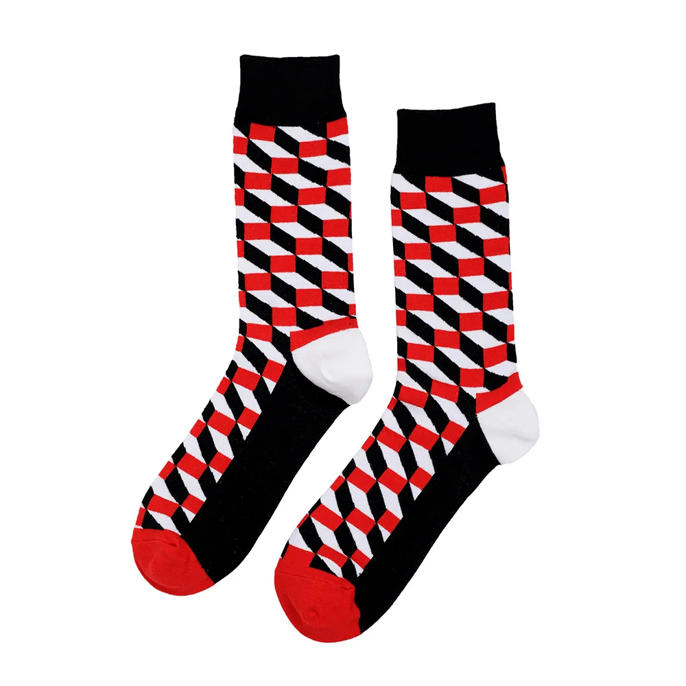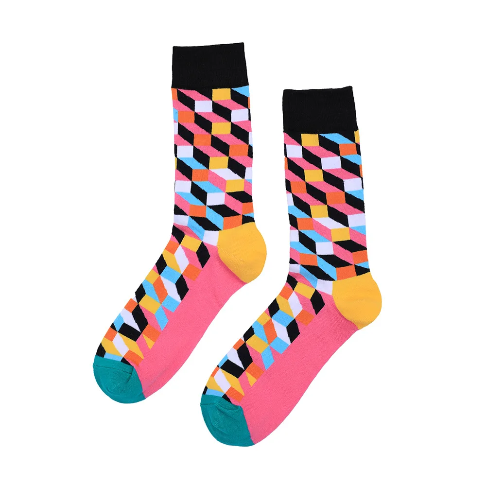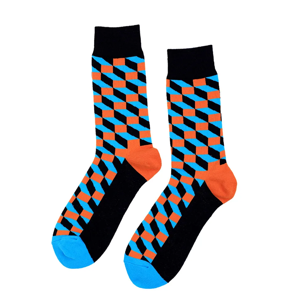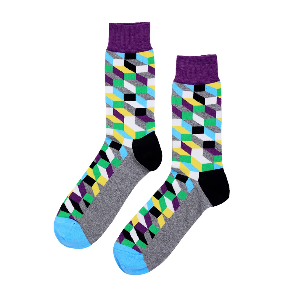 Мужские носки удобные чесаные хлопковые забавные Фэнтези ромбовидные решетки с волнистым узором повседневные Счастливые новые вечерние подарочные носки